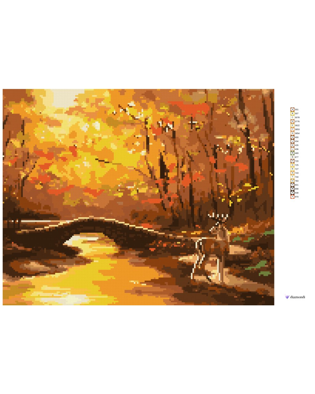 Diamantové malování - JELEN A KAMENNÝ MOST NA PODZIM (D. RUSTY RUST)