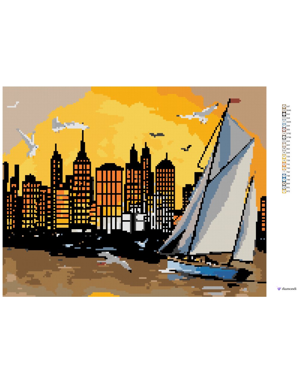 Diamantové malování - PLACHETNICE, MRAKODRAPY A ZÁPAD SLUNCE (D. RUSTY RUST)