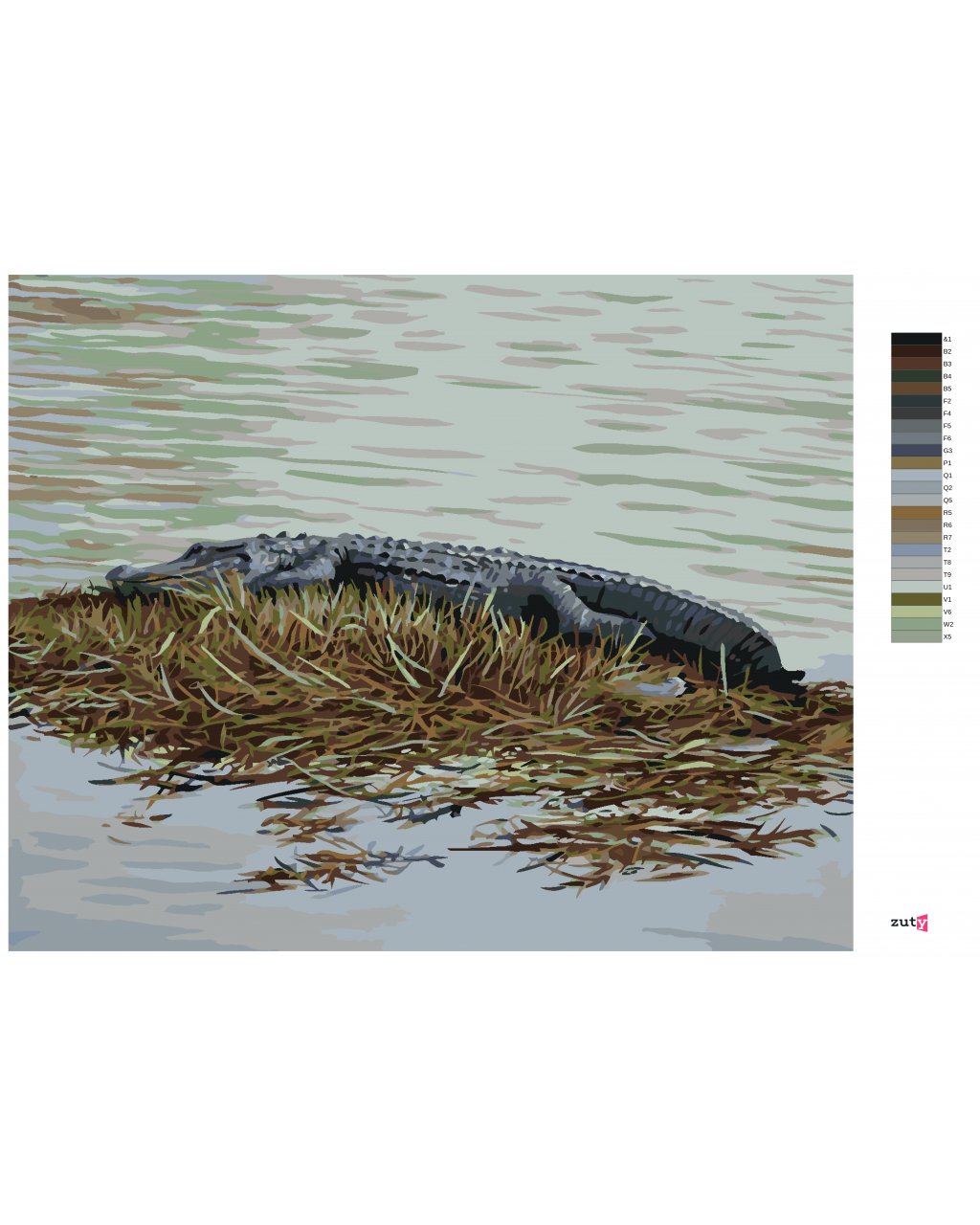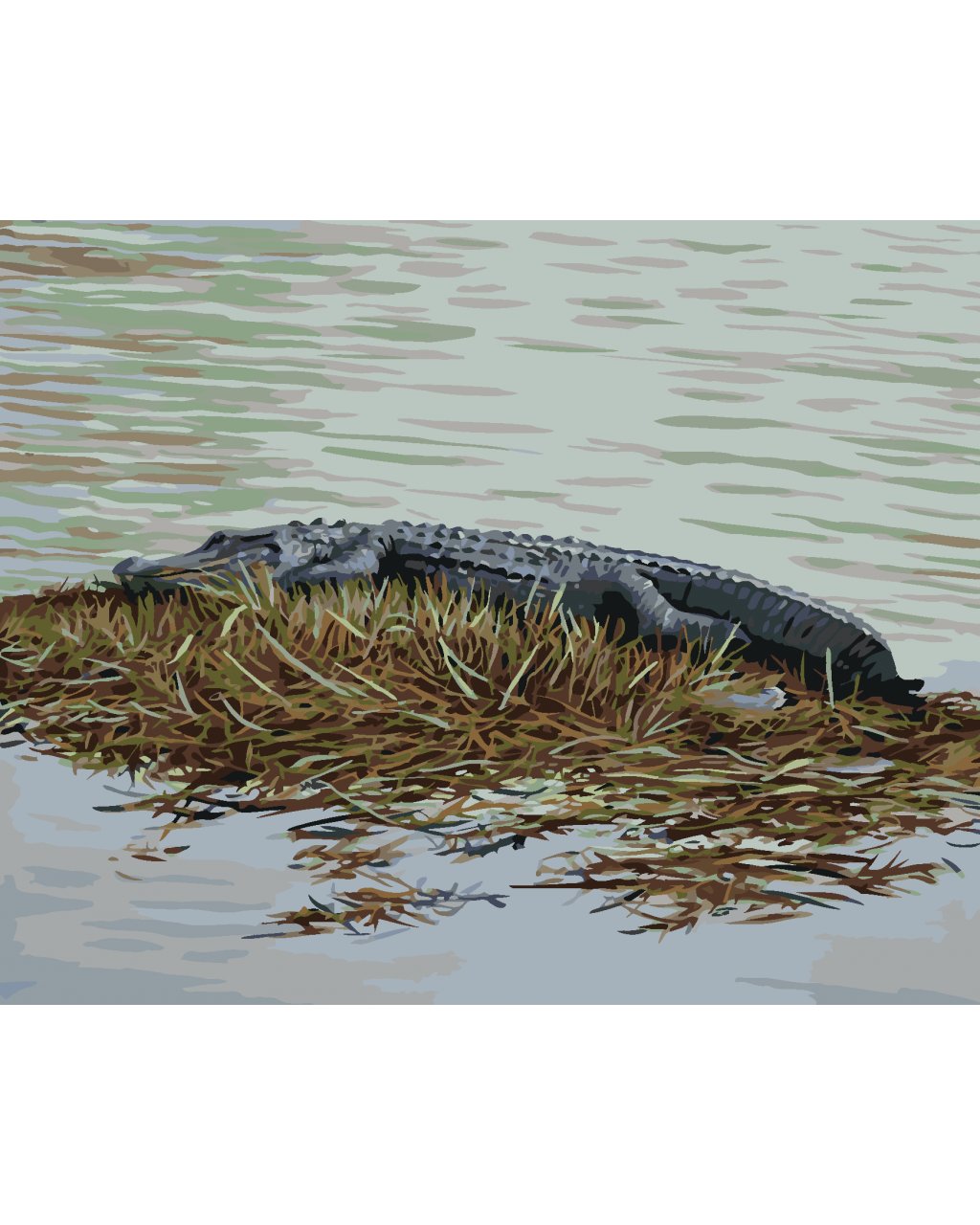 Malování podle čísel - ALIGÁTOR LEŽÍCÍ NA TRÁVĚ VE VODĚ (D. RUSTY RUST)