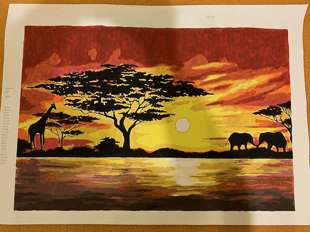 Malování podle čísel - AFRIKA ŽIRAFA A SLONI