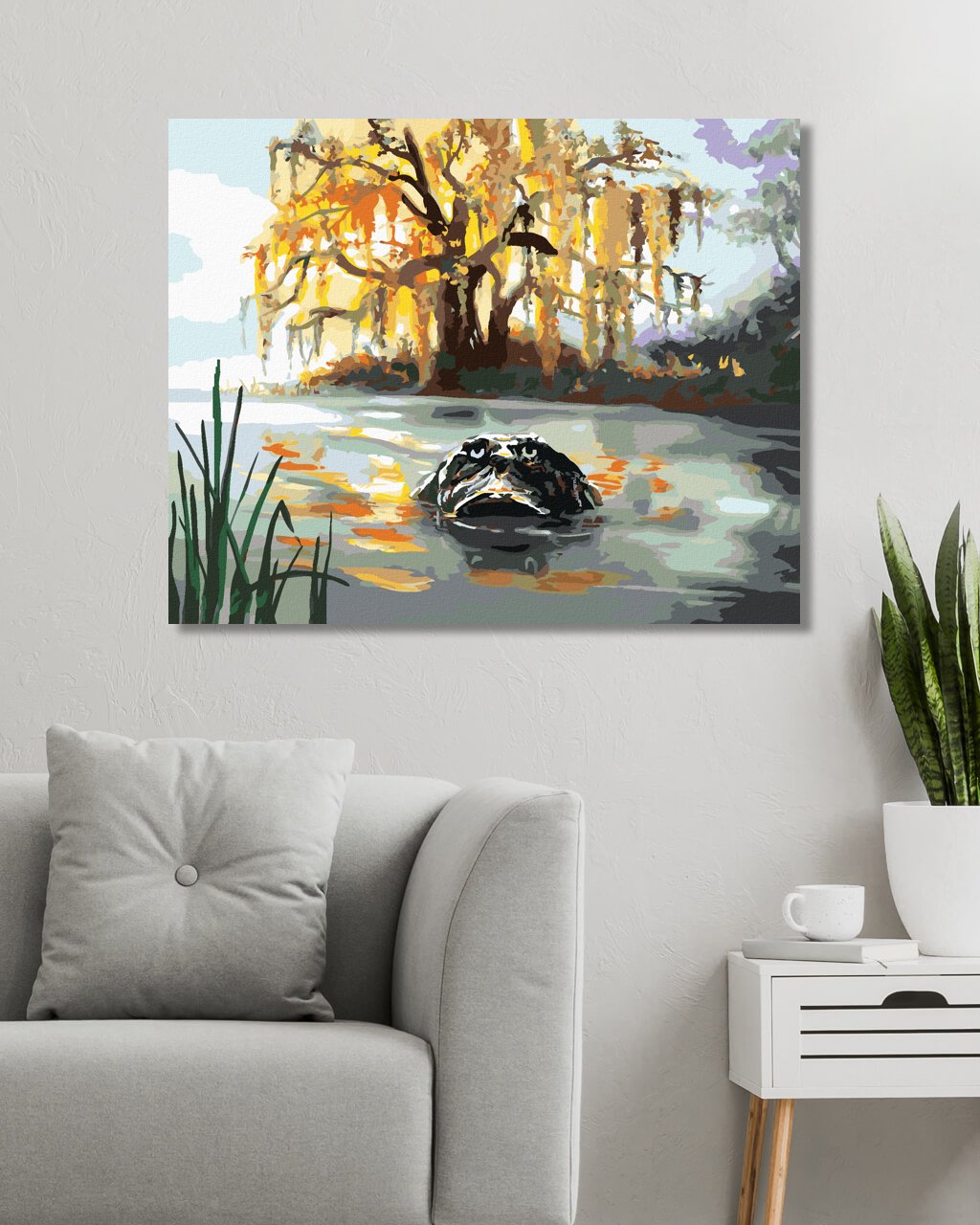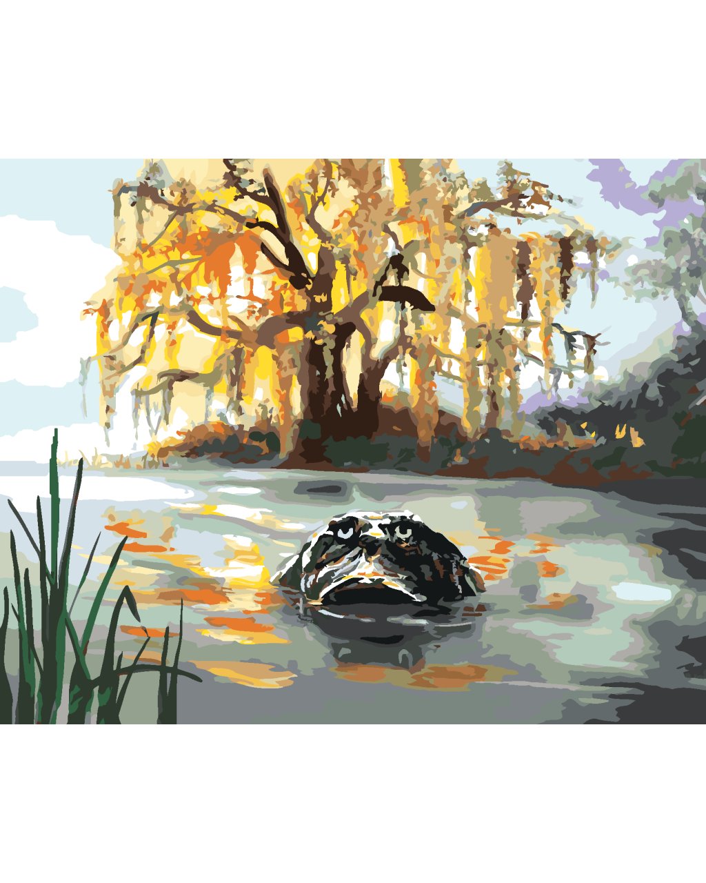 Malování podle čísel - ALIGÁTOR HLEDÍCÍ Z VODY A STROMY (D. RUSTY RUST)