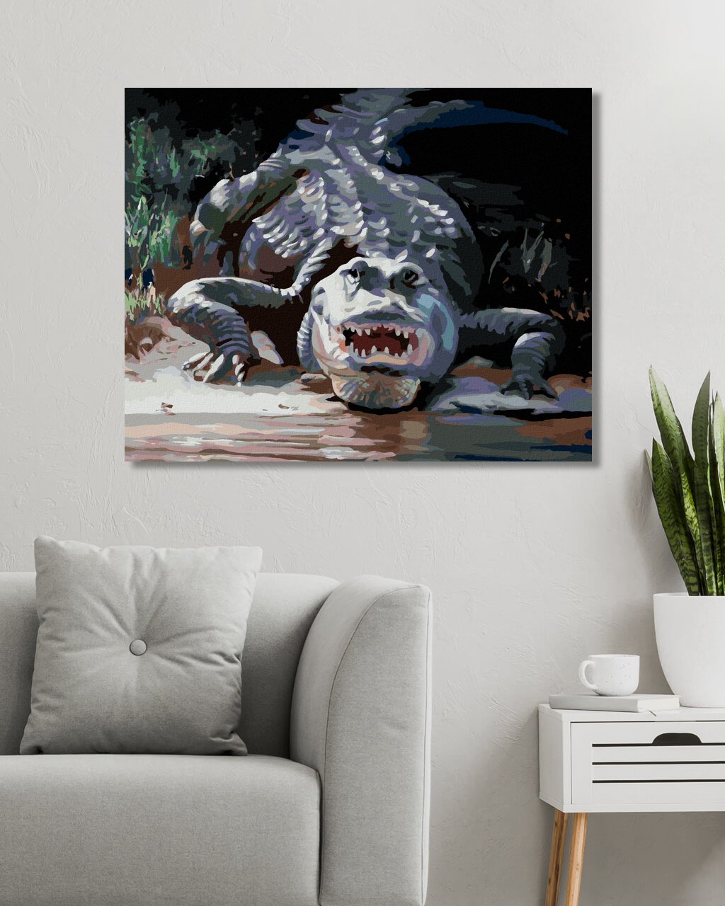 Malování podle čísel - ALIGÁTOR S OTEVŘENOU TLAMOU U VODY (D. RUSTY RUST)