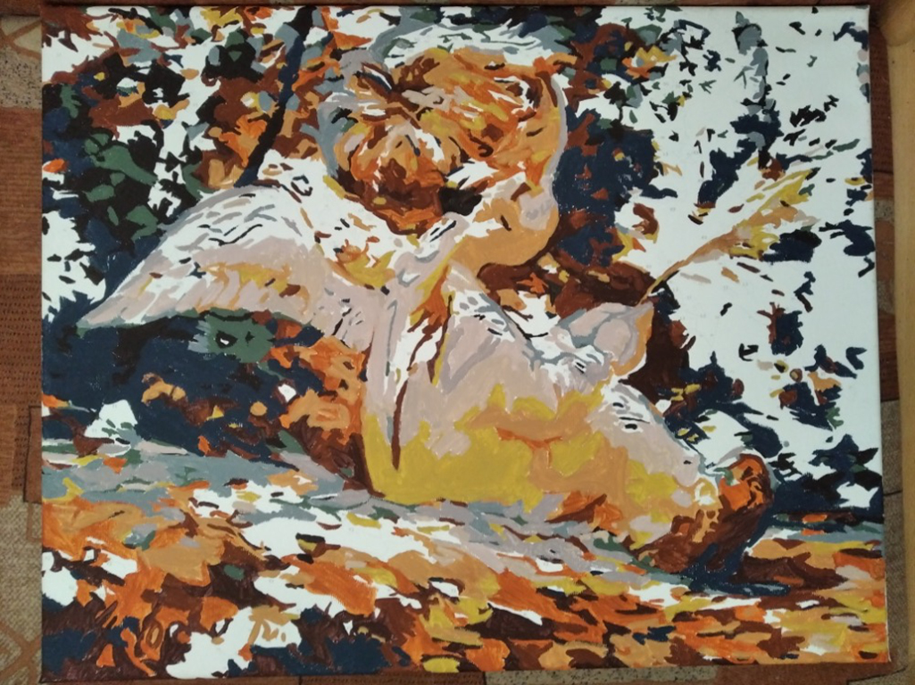 Malování podle čísel - ANDÍLEK S JAVOROVÝM LÍSTKEM