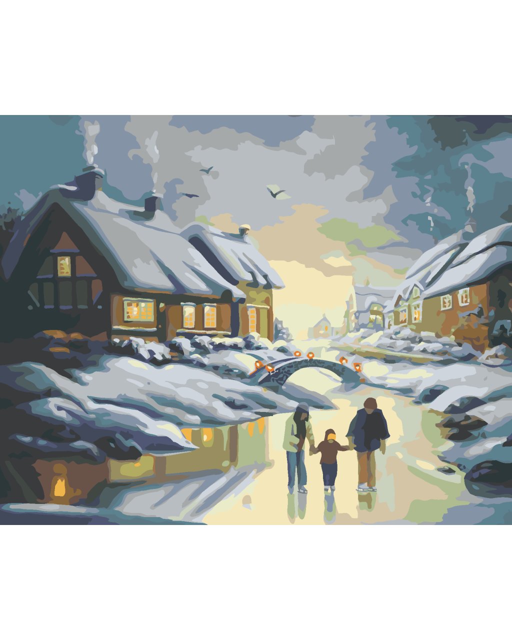 Malování podle čísel - BRUSLAŘI NA LEDĚ A DOMY (D. RUSTY RUST)