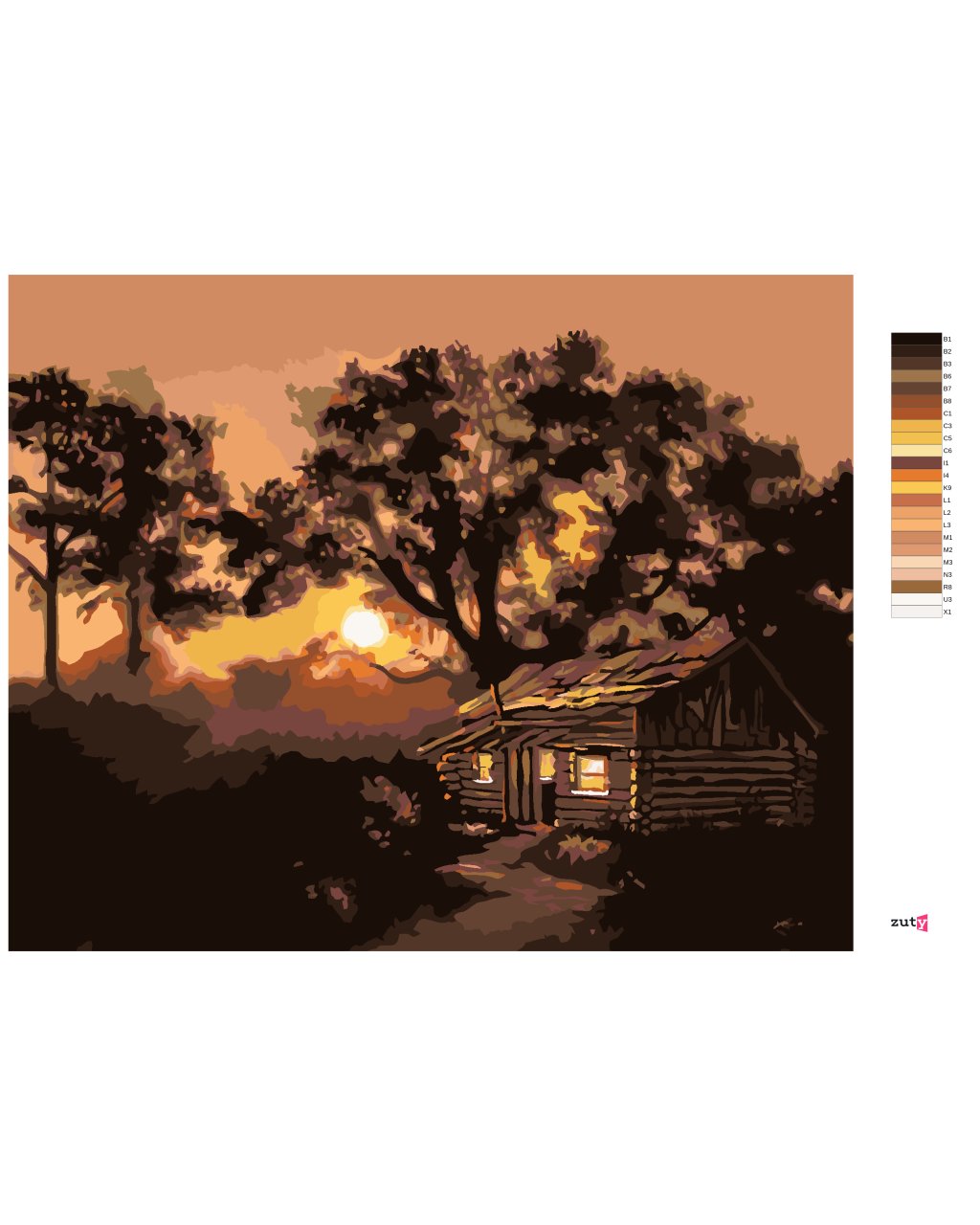 Malování podle čísel - CHATA PŘI SOUMRAKU (D. RUSTY RUST)