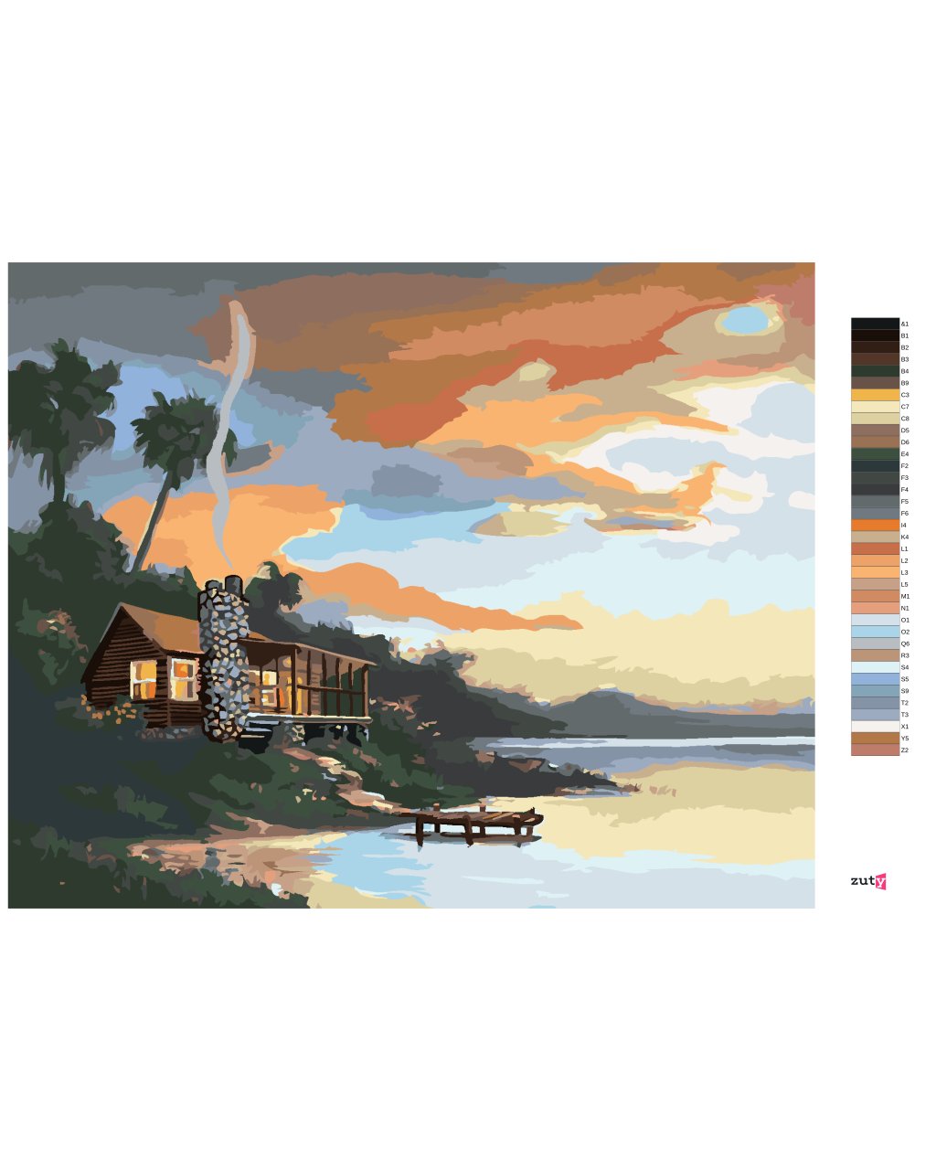 Malování podle čísel - CHATA PŘI SOUMRAKU (D. RUSTY RUST)