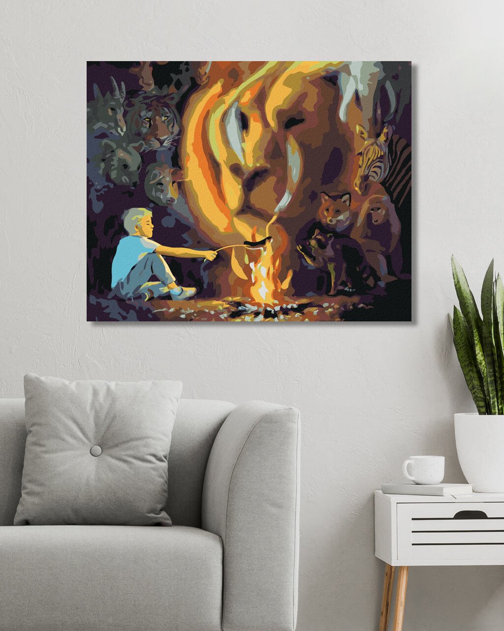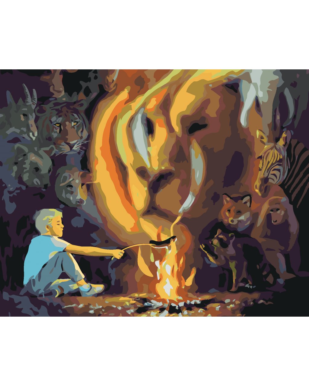 Malování podle čísel - CHLAPEC U OHNĚ A LEV V KOUŘI (D. RUSTY RUST)
