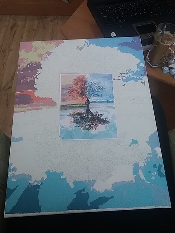 Můj první obraz. Nadchlo mě to,musela jsem si koupit další 2. Moc mě to baví.