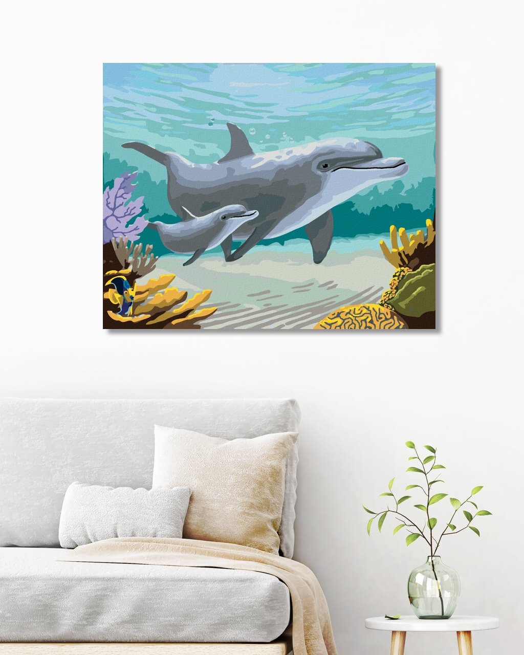 Malování podle čísel - DELFÍNI A KORÁLY (ROBERT JOHNSON)