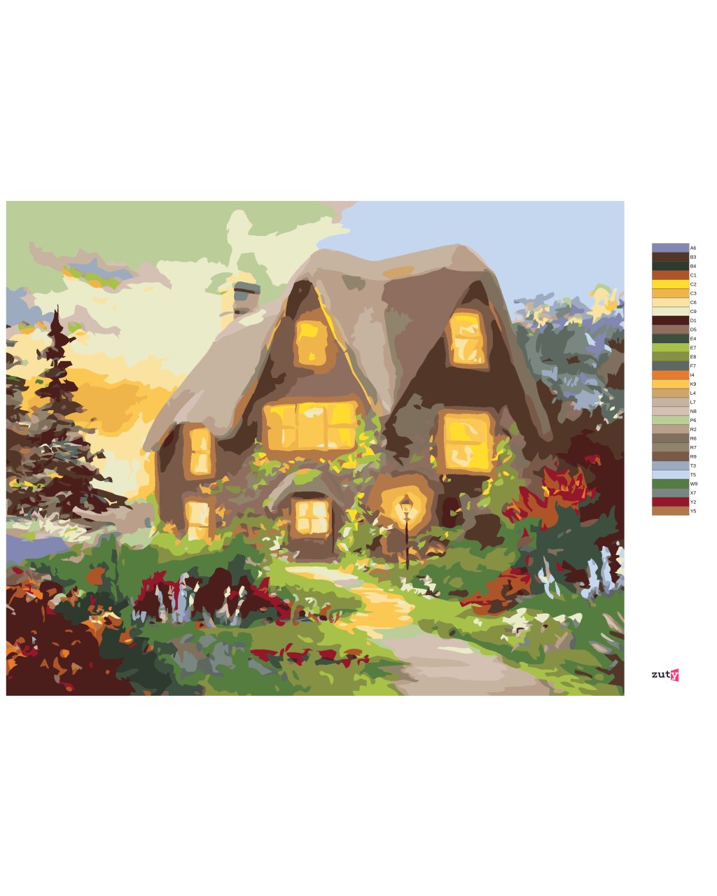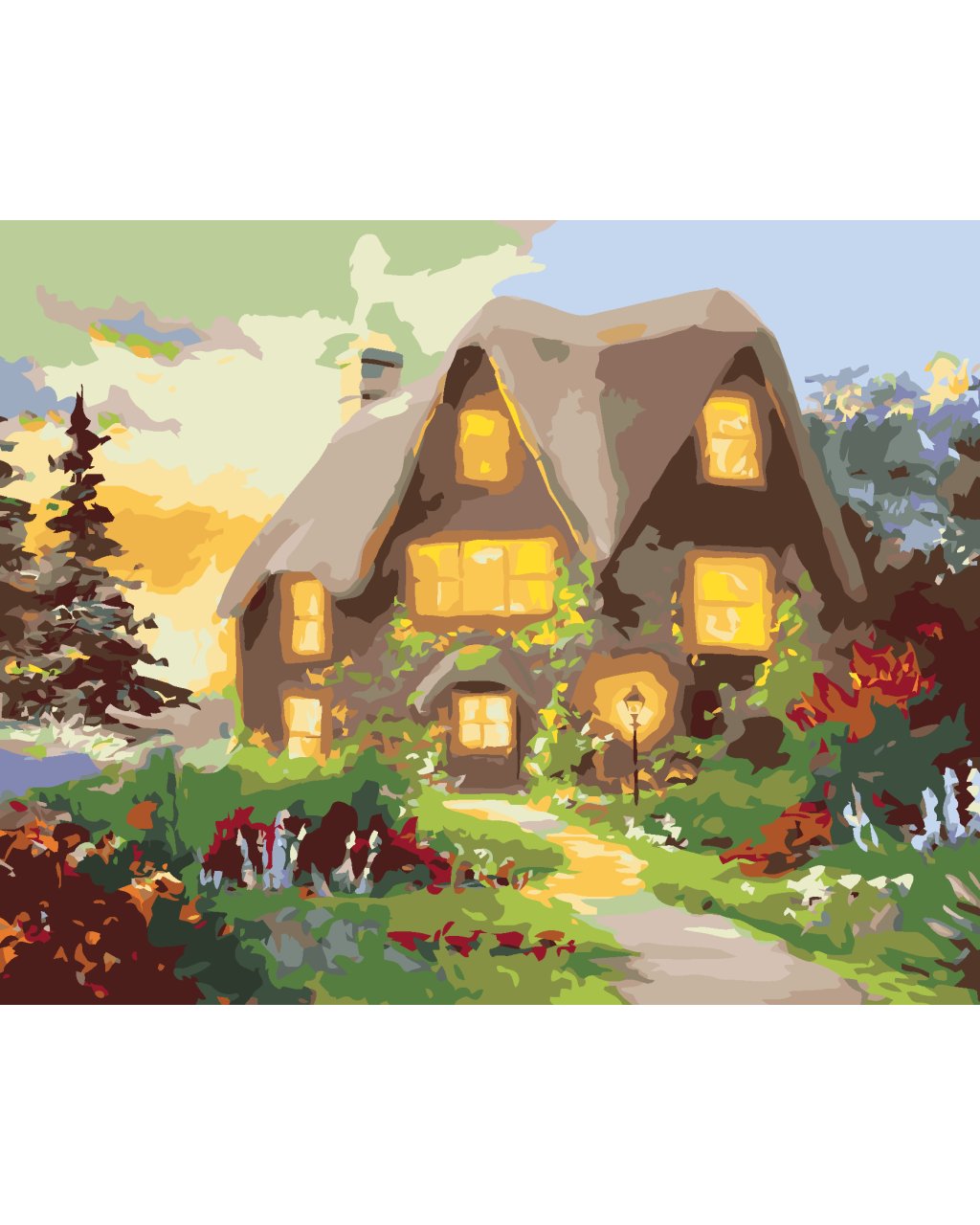Malování podle čísel - DŮM A CESTA LEMOVANÁ KVĚTINAMI (D. RUSTY RUST)