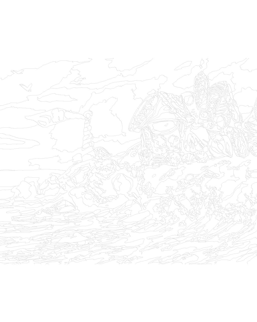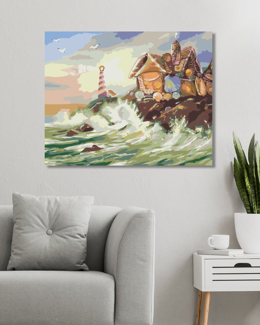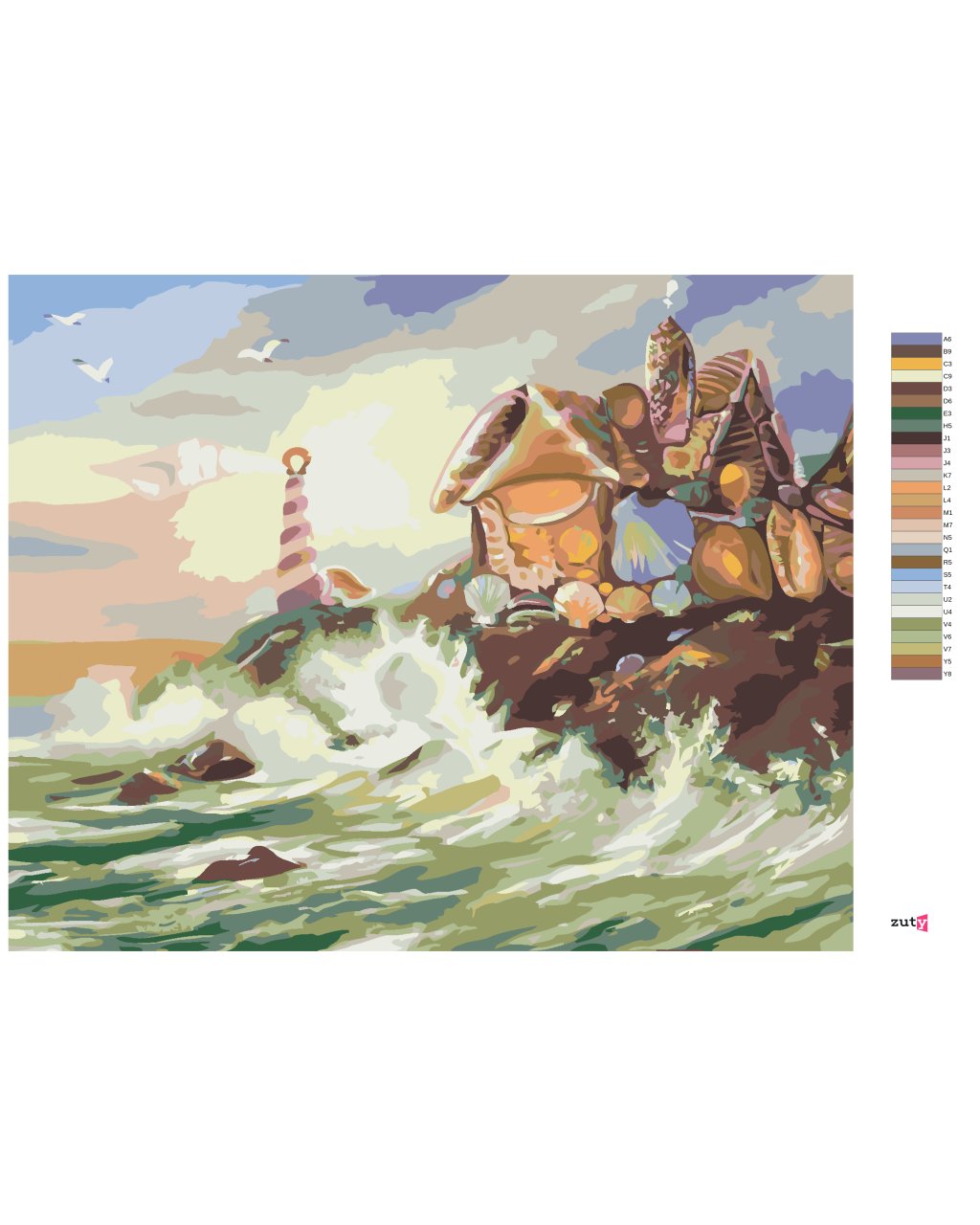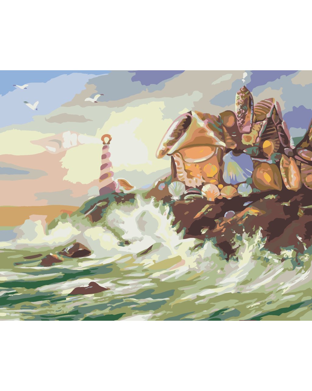 Malování podle čísel - DŮM A MAJÁK Z MUŠLÍ A VLNY (D. RUSTY RUST)