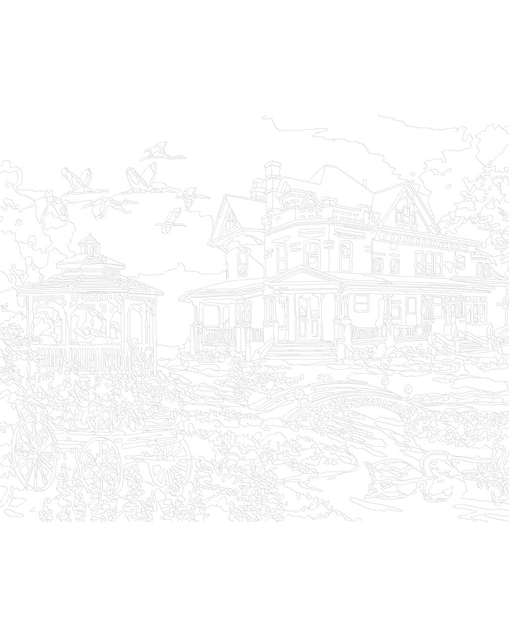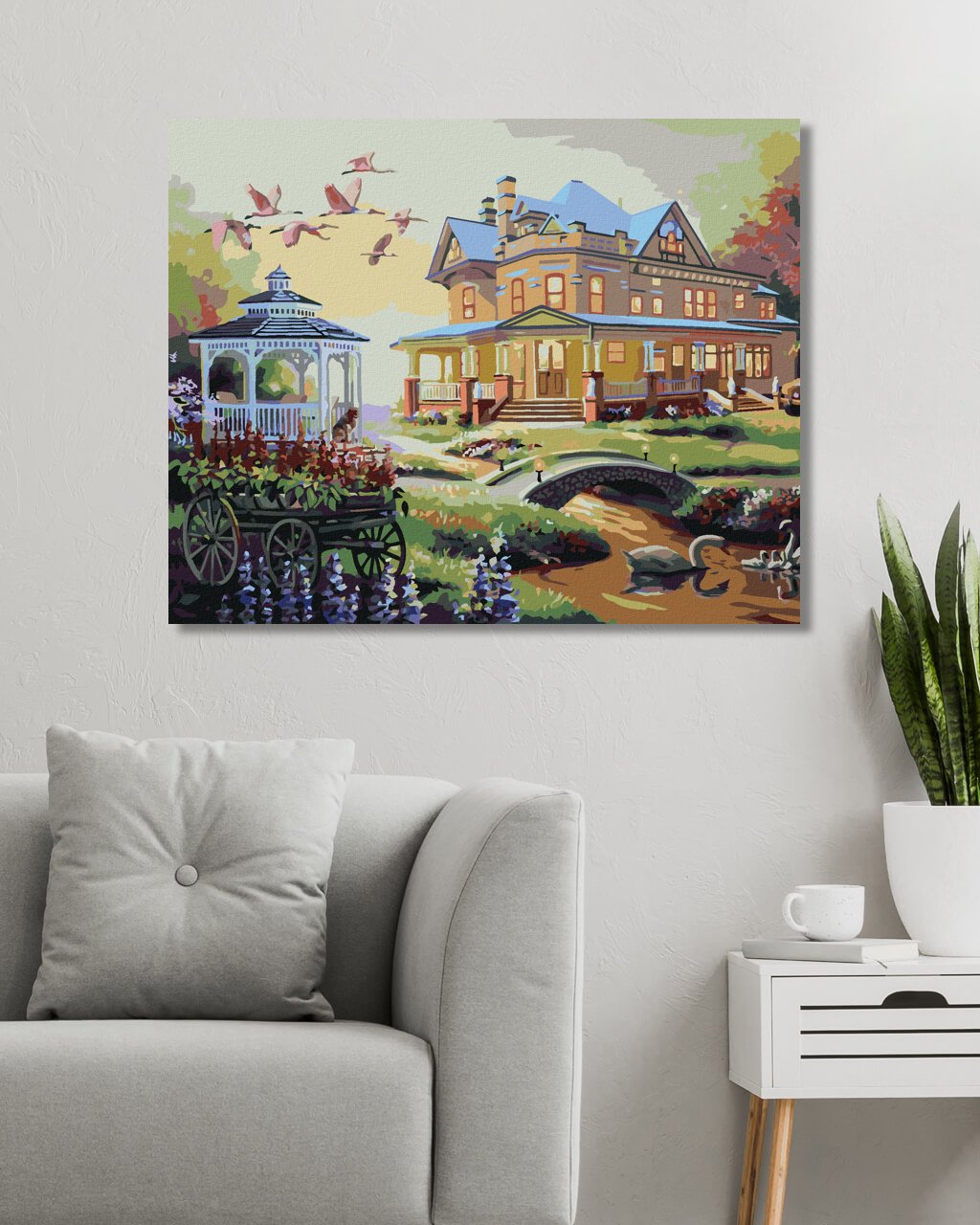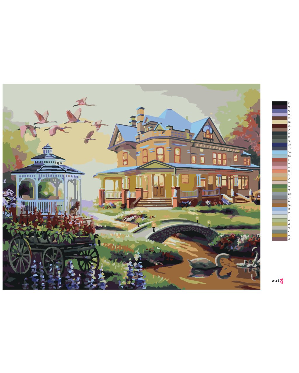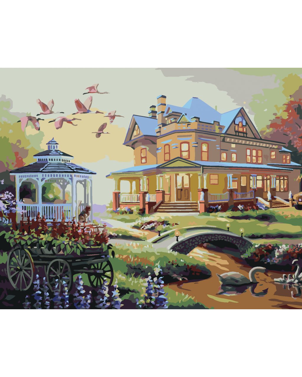 Malování podle čísel - DŮM S ALTÁNEM A ZÁPAD SLUNCE (D. RUSTY RUST)