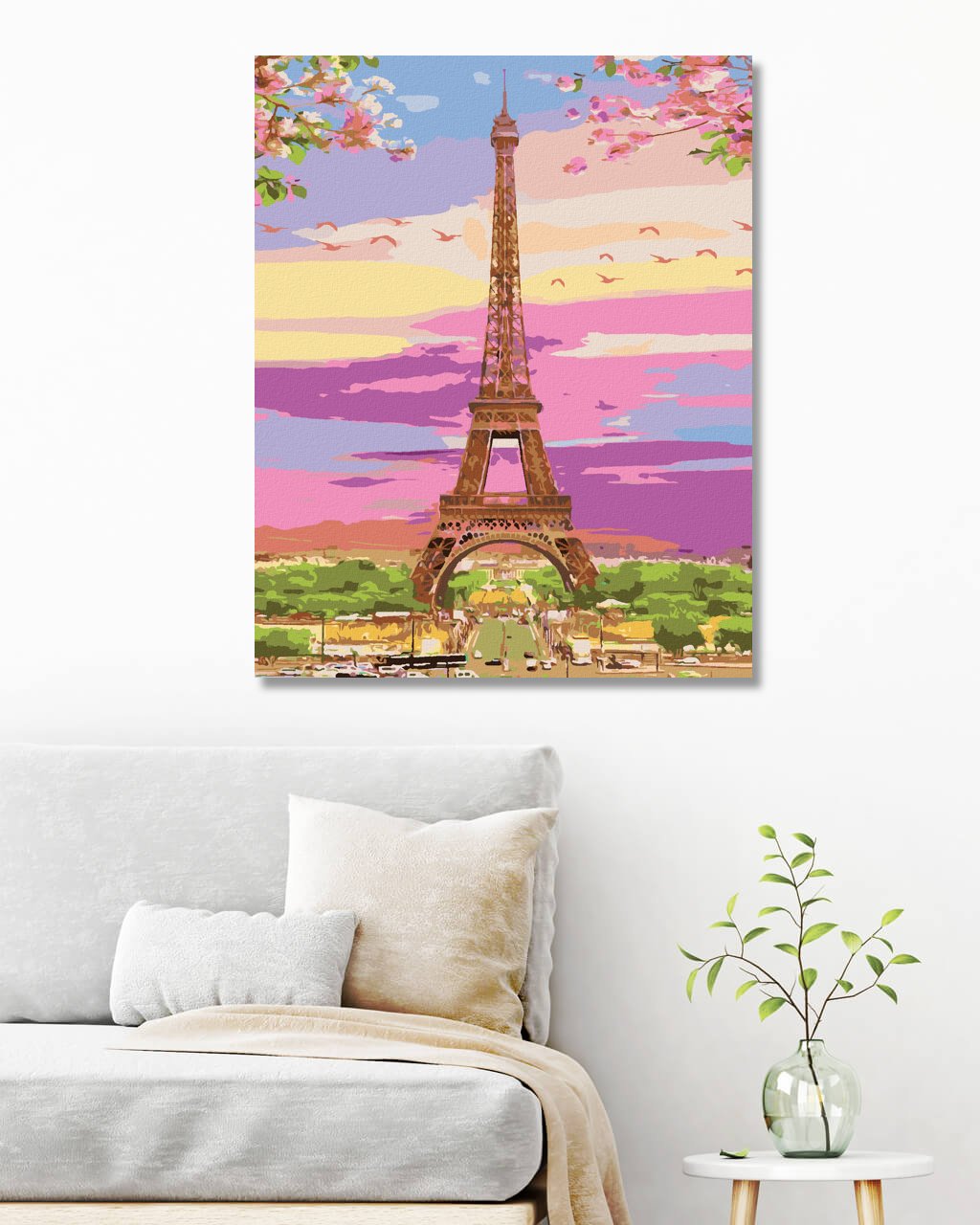 Malování podle čísel - EIFFELOVA VĚŽ V JARNÍCH BARVÁCH