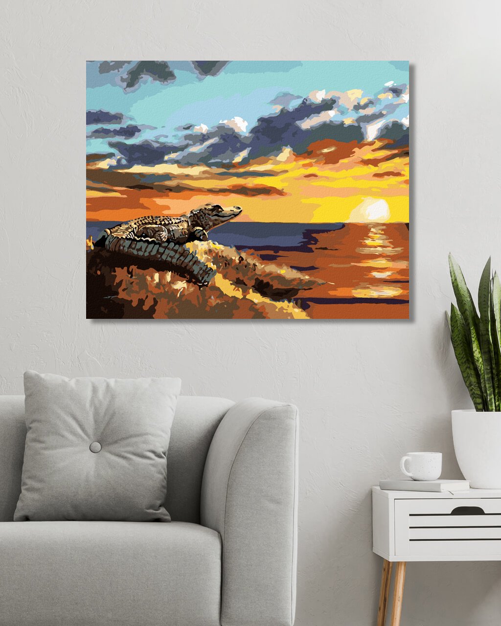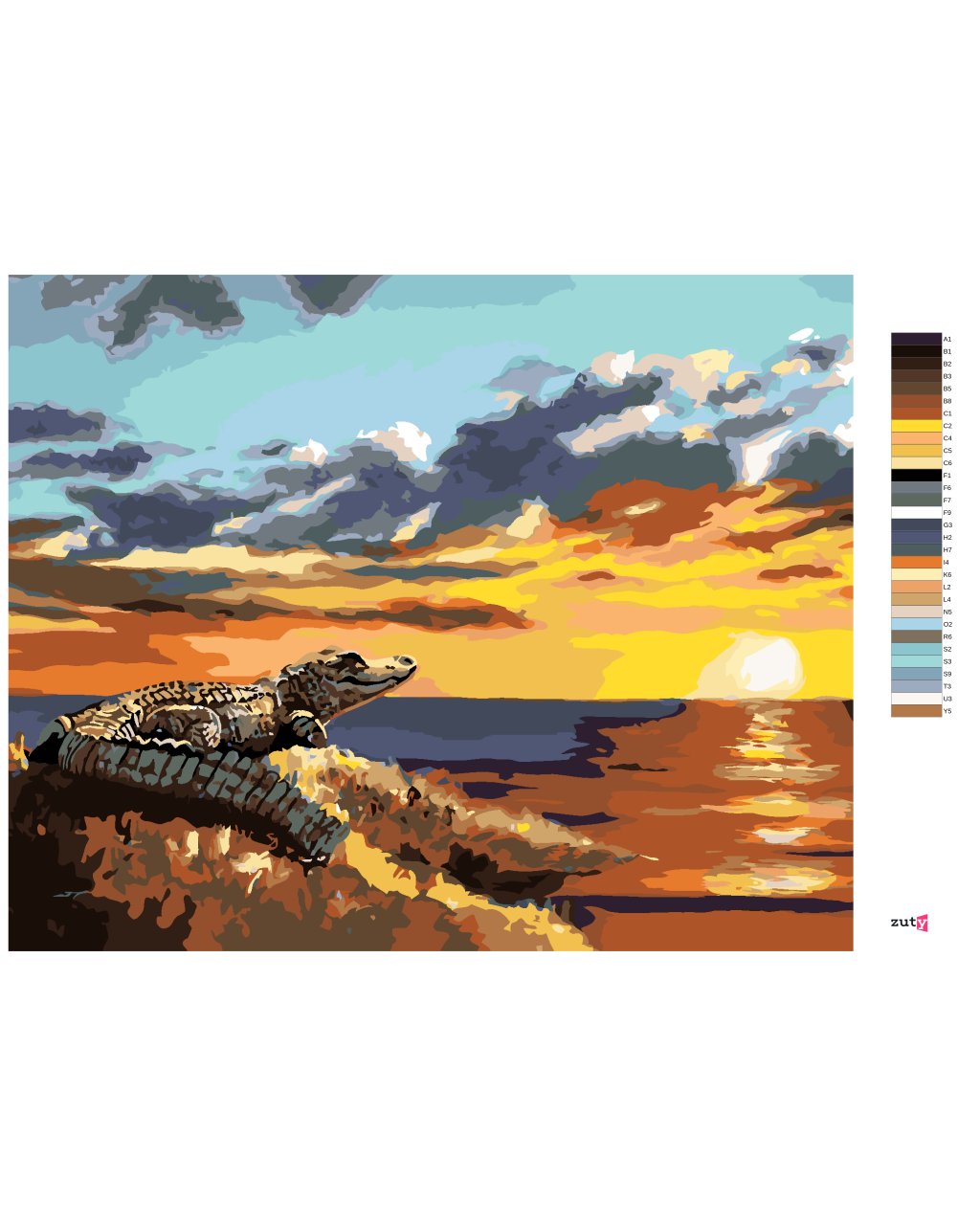 Malování podle čísel - HLEDÍCÍ ALIGÁTOR A ZÁPAD SLUNCE (D. RUSTY RUST)