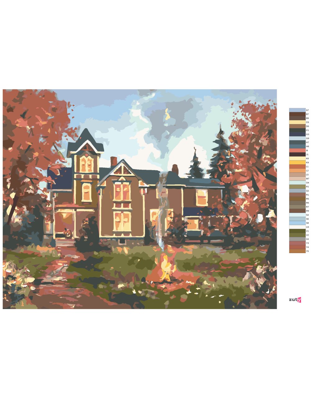 Malování podle čísel - HNĚDÝ DŮM NA PODZIM (D. RUSTY RUST)