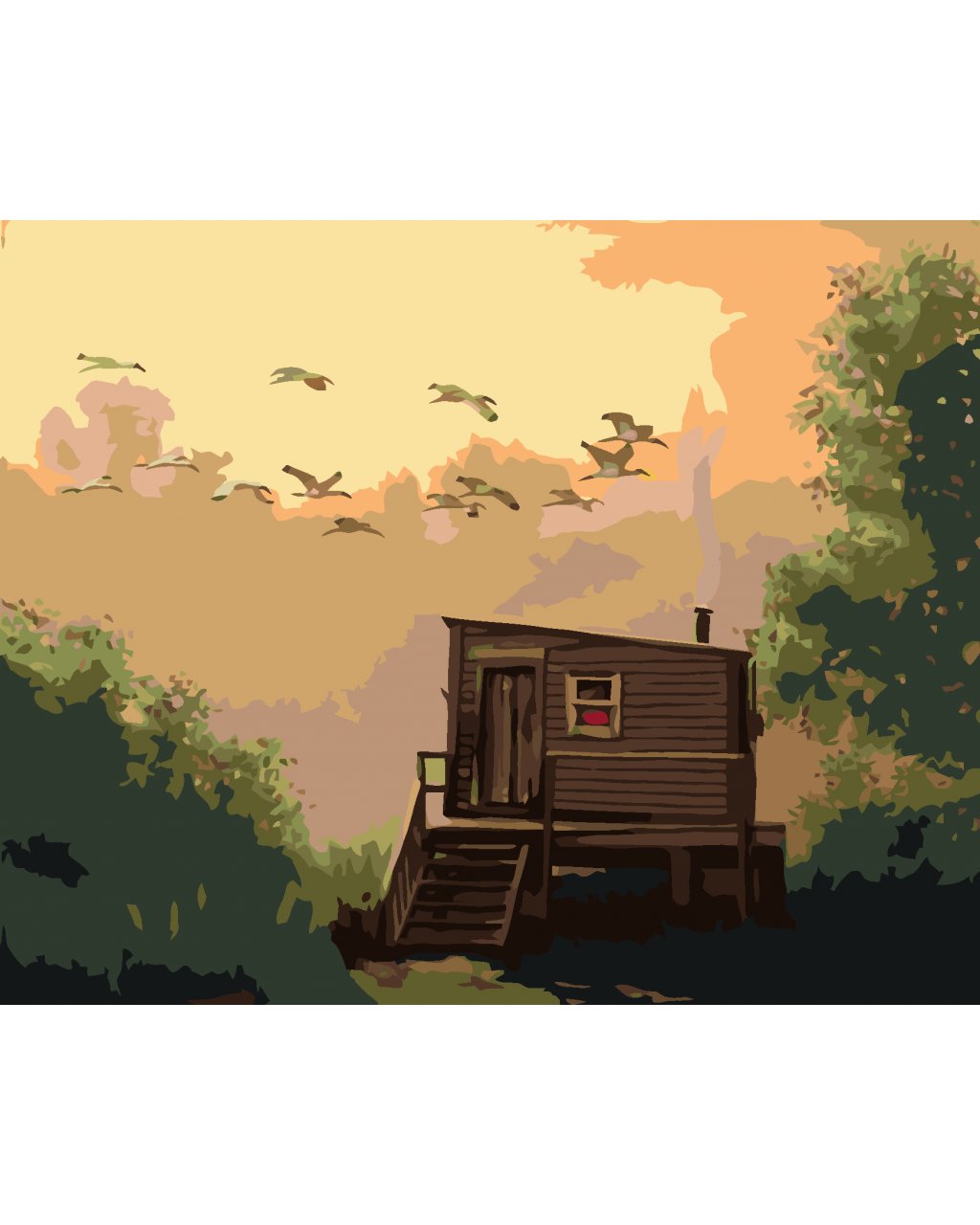 Malování podle čísel - IBIS LETÍCÍ NAD CHATOU (D. RUSTY RUST)
