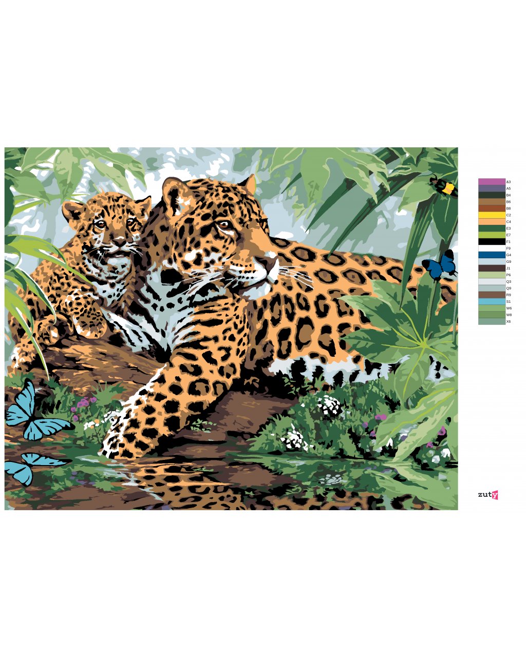Malování podle čísel - JAGUÁR S MLÁDĚTEM U VODY (HOWARD ROBINSON)