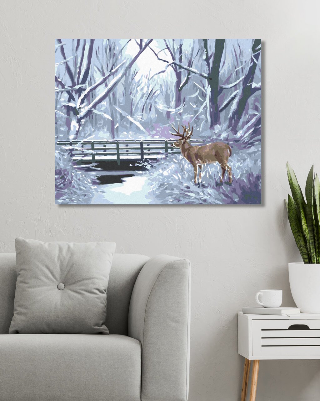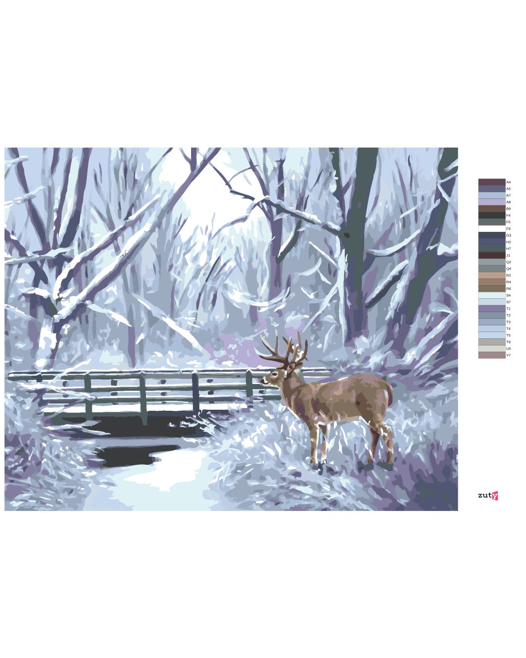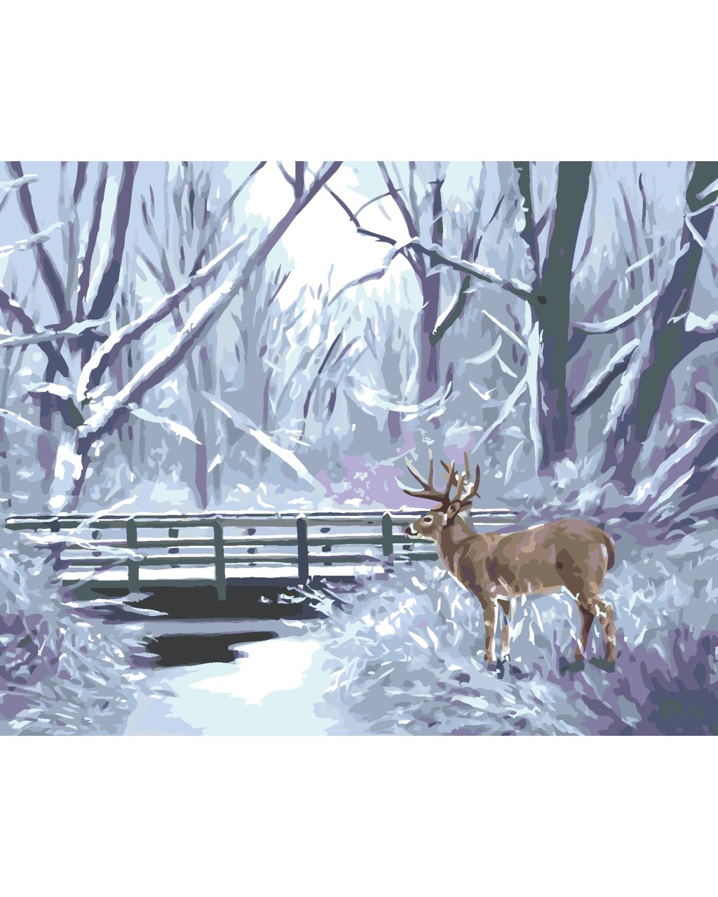 Malování podle čísel - JELEN, ŘEKA A MOST V ZIMĚ (D. RUSTY RUST)