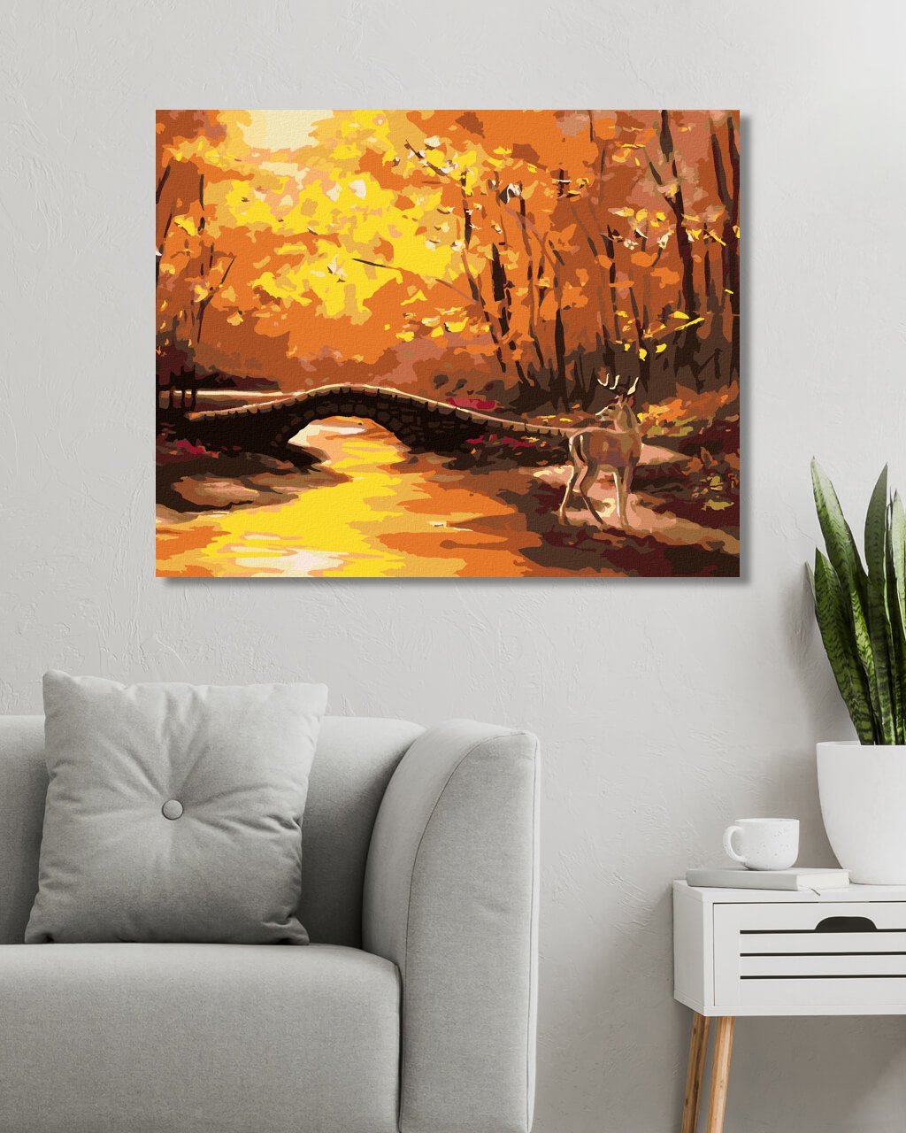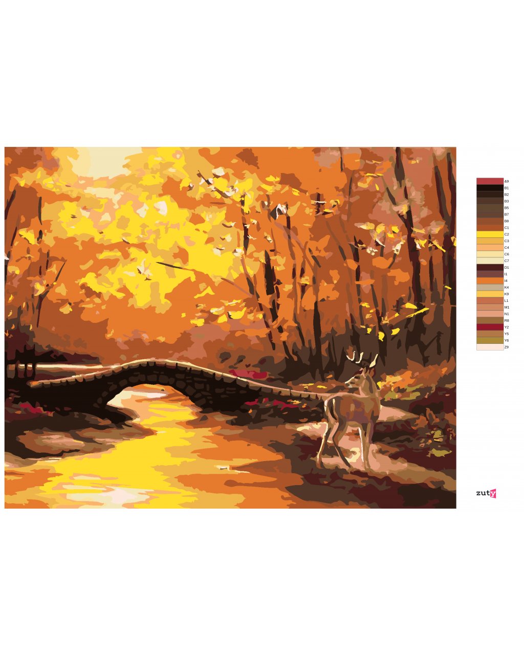 Malování podle čísel - JELEN A KAMENNÝ MOST NA PODZIM (D. RUSTY RUST)