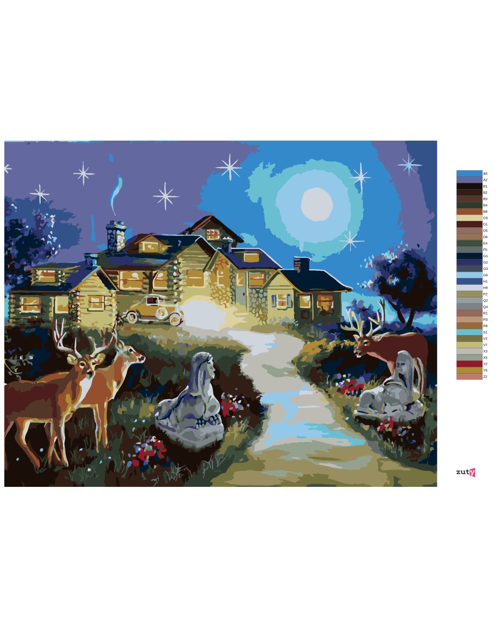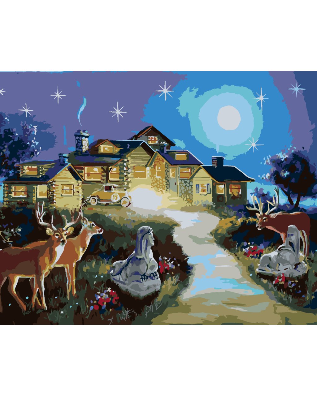Malování podle čísel - JELEN A LAŇ U DOMU (D. RUSTY RUST)