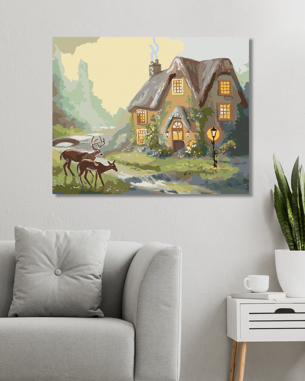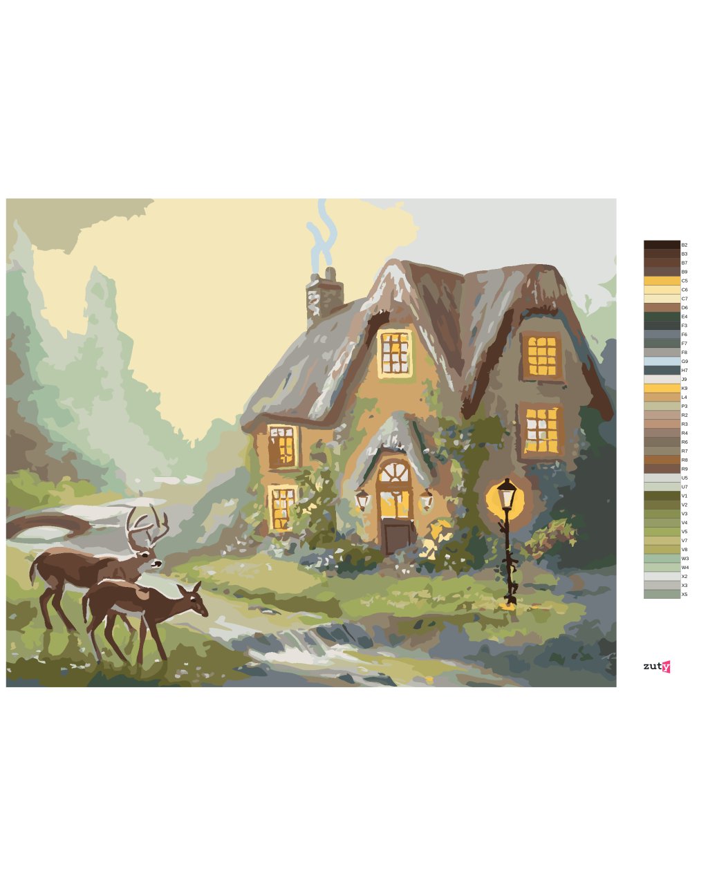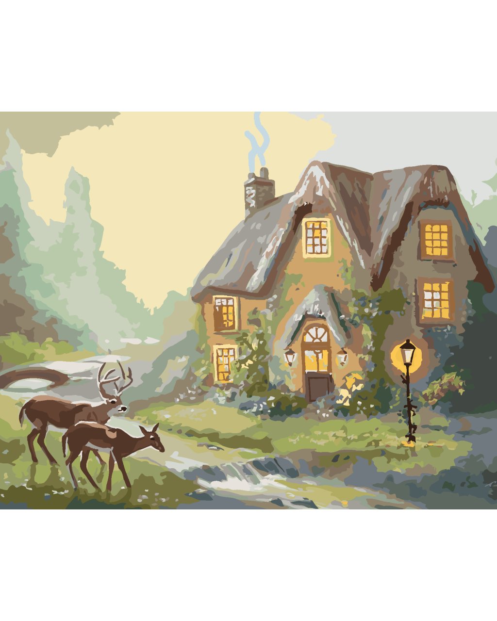 Malování podle čísel - JELEN A LAŇ U LESNÍHO DOMU (D. RUSTY RUST)