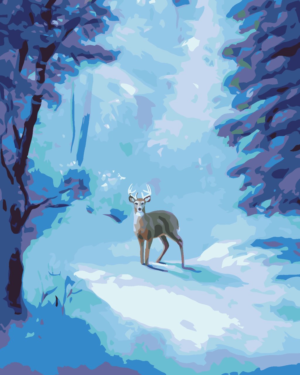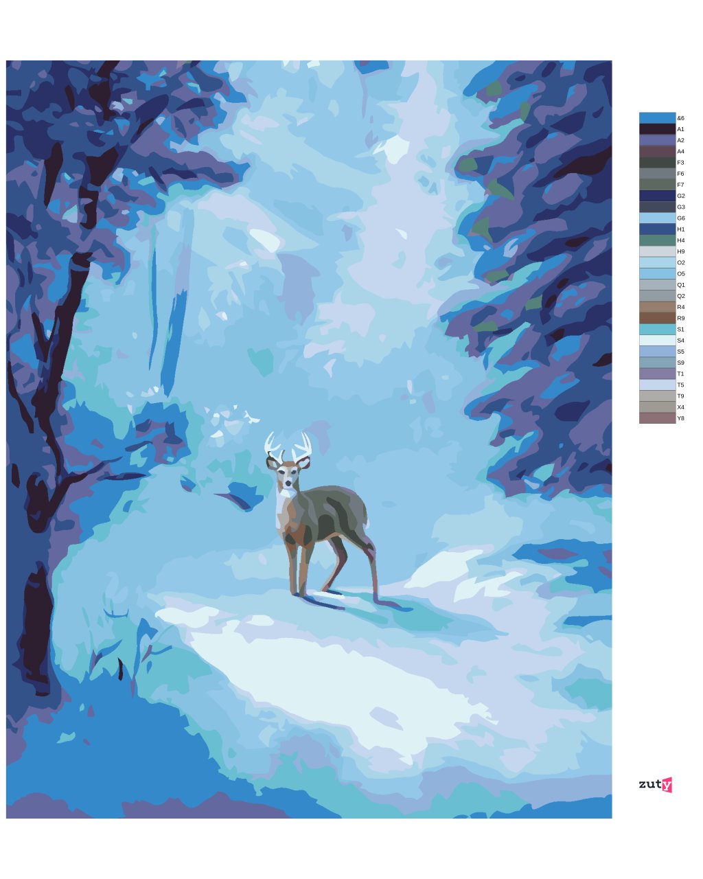 Malování podle čísel - JELEN A TAJEMNÝ ZIMNÍ LES (D. RUSTY RUST)