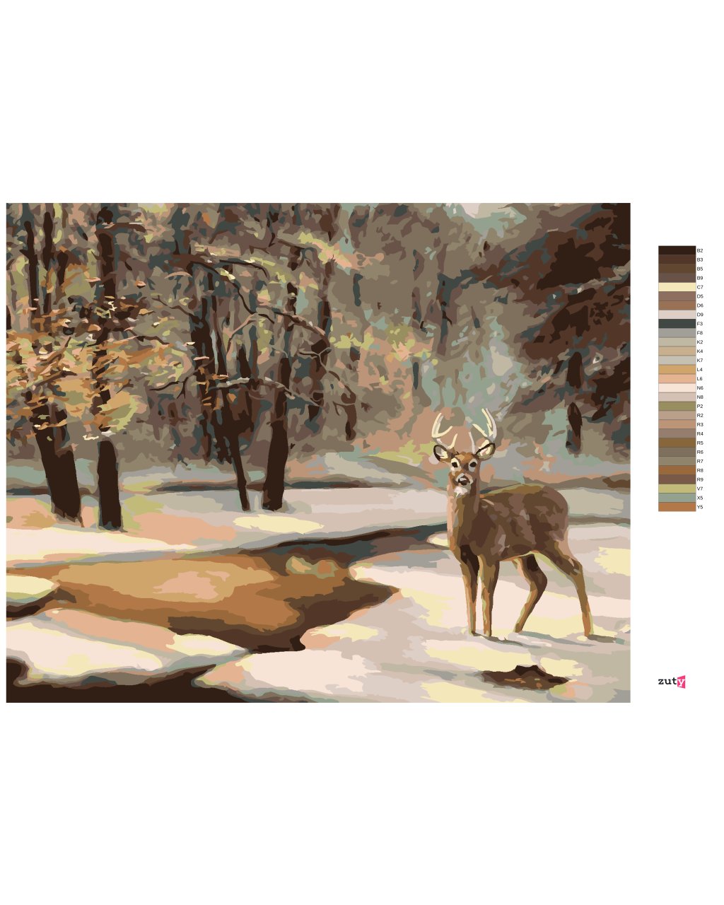 Malování podle čísel - JELEN A ZAMRZLÝ POTOK (D. RUSTY RUST)