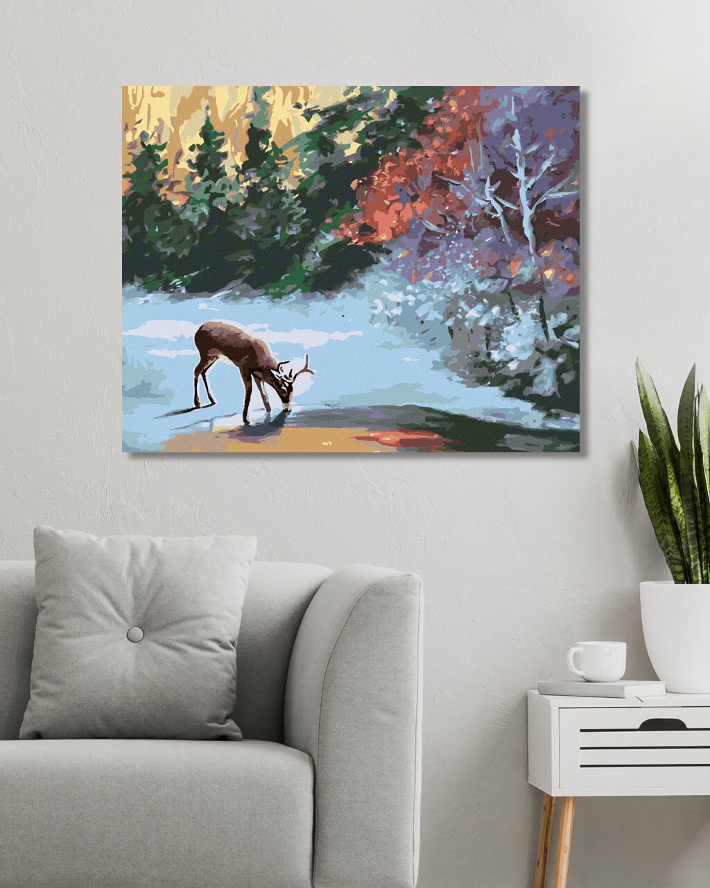 Malování podle čísel - JELEN U ZAMRZLÉHO POTOKA (D. RUSTY RUST)