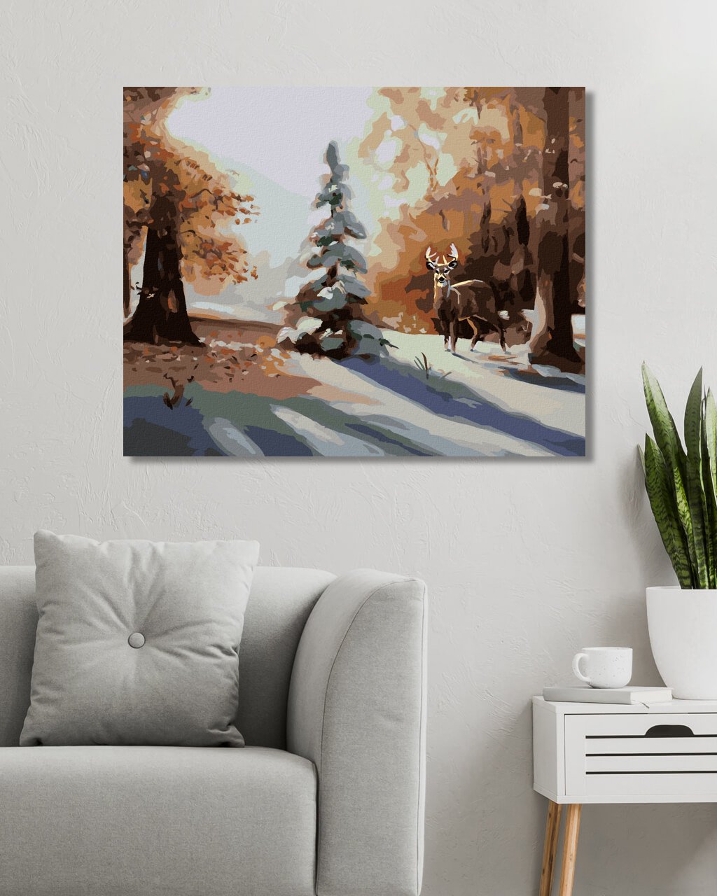 Malování podle čísel - JELEN U ZASNĚŽENÉHO STROMU (D. RUSTY RUST)