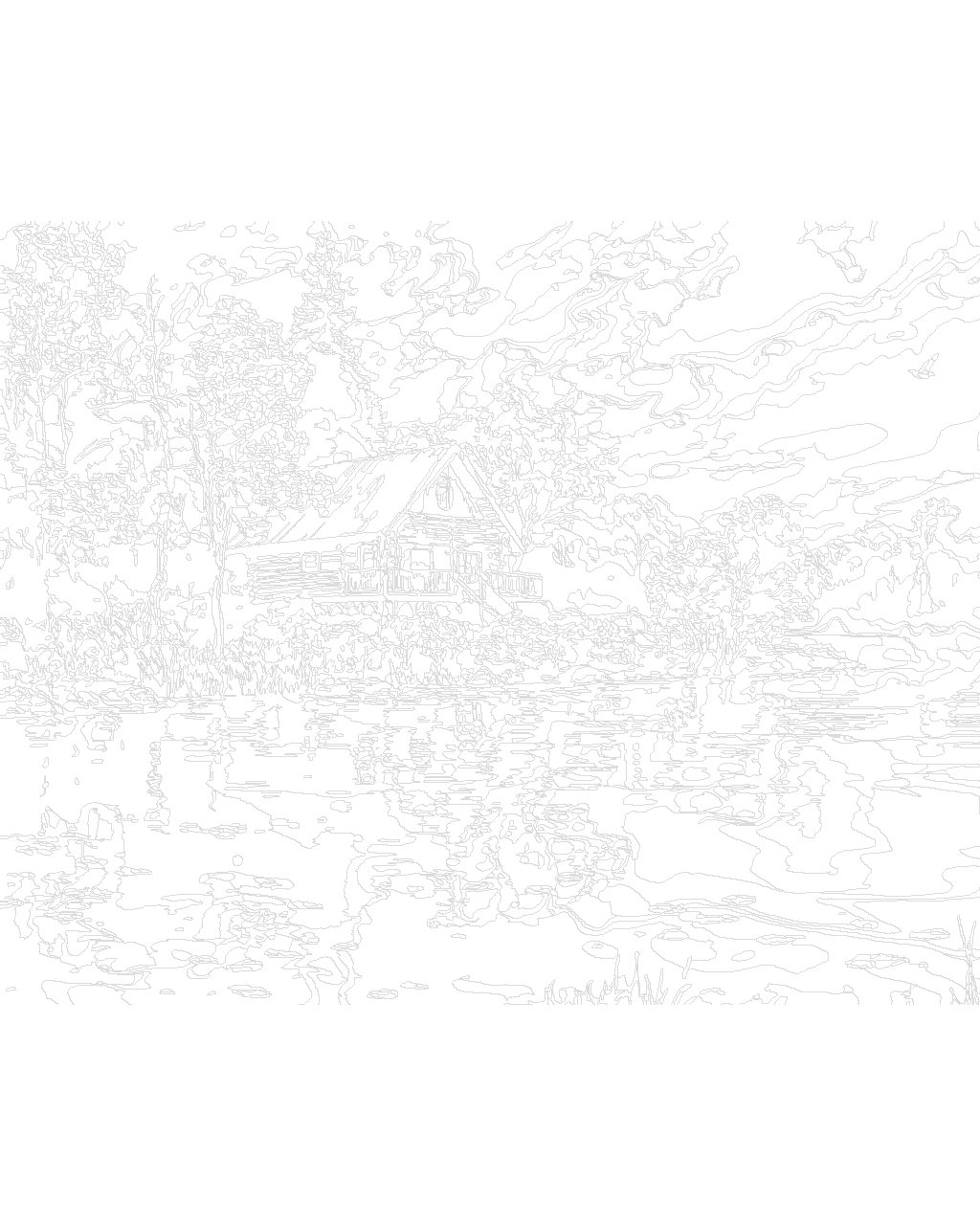 Malování podle čísel - JEZERO, CHATA A ZÁPAD SLUNCE