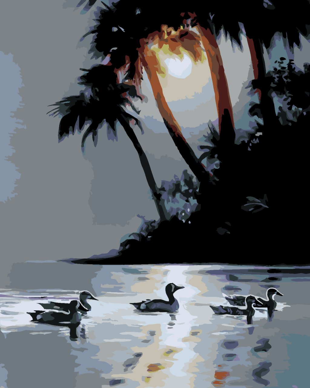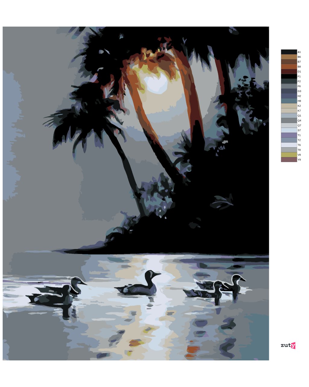 Malování podle čísel - KACHNA, PALMY A ZÁPAD SLUNCE (D. RUSTY RUST)