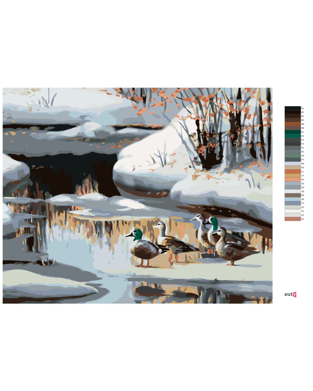Malování podle čísel - KACHNA NA ZAMRZLÉ ŘECE (D. RUSTY RUST)