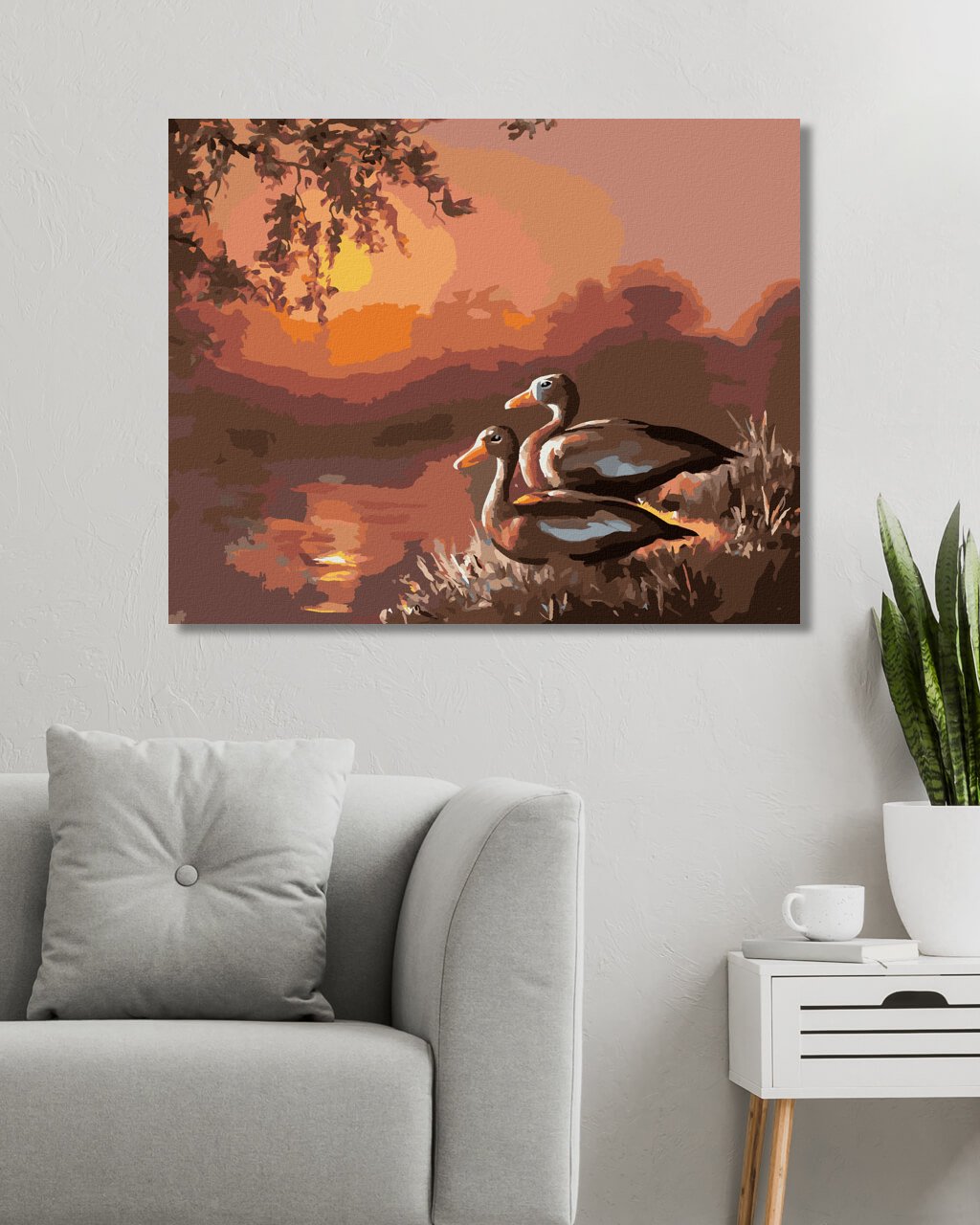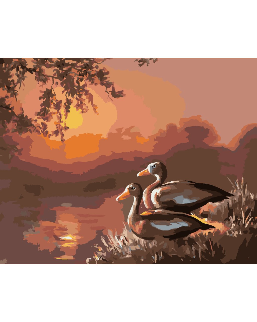 Malování podle čísel - KACHNY U JEZERA A ZÁPAD SLUNCE (D. RUSTY RUST)