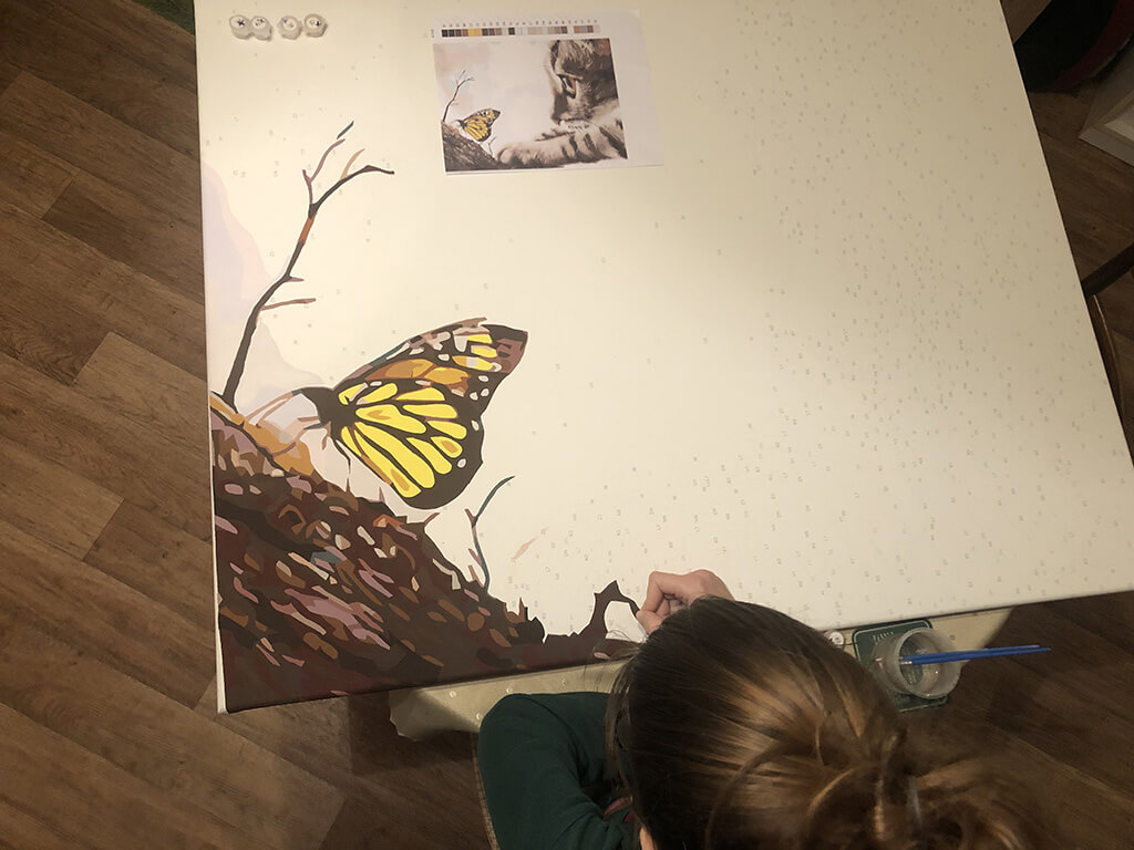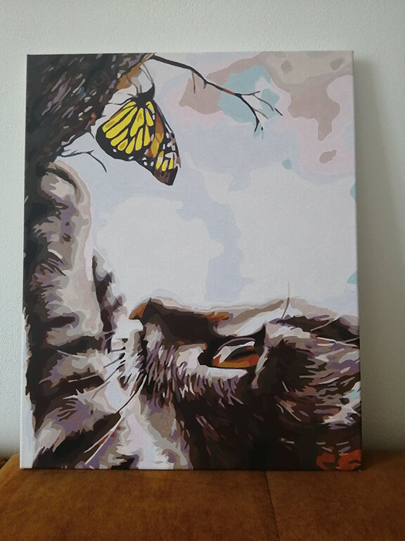 Malování podle čísel - KOČKA A ŽLUTÝ MOTÝL