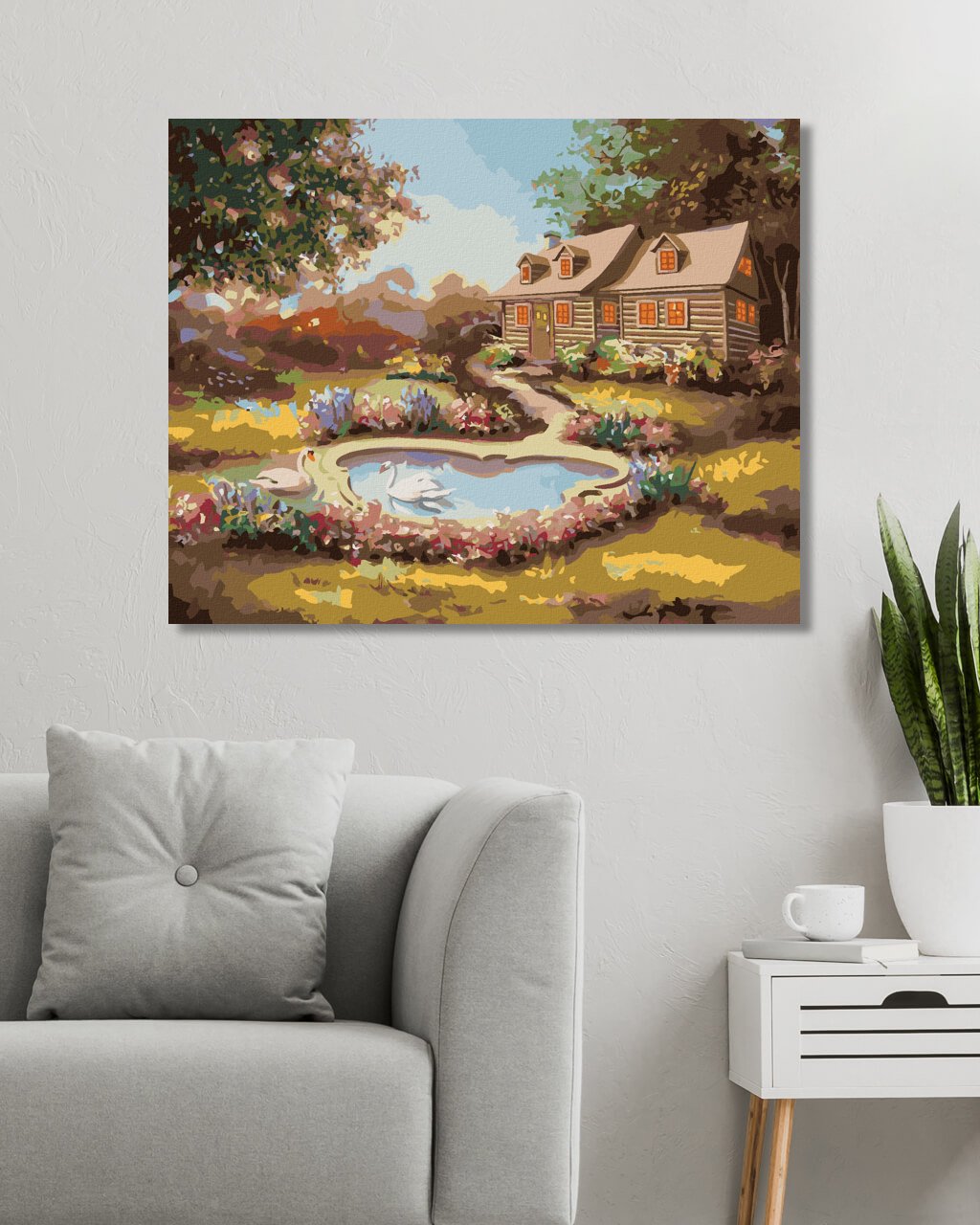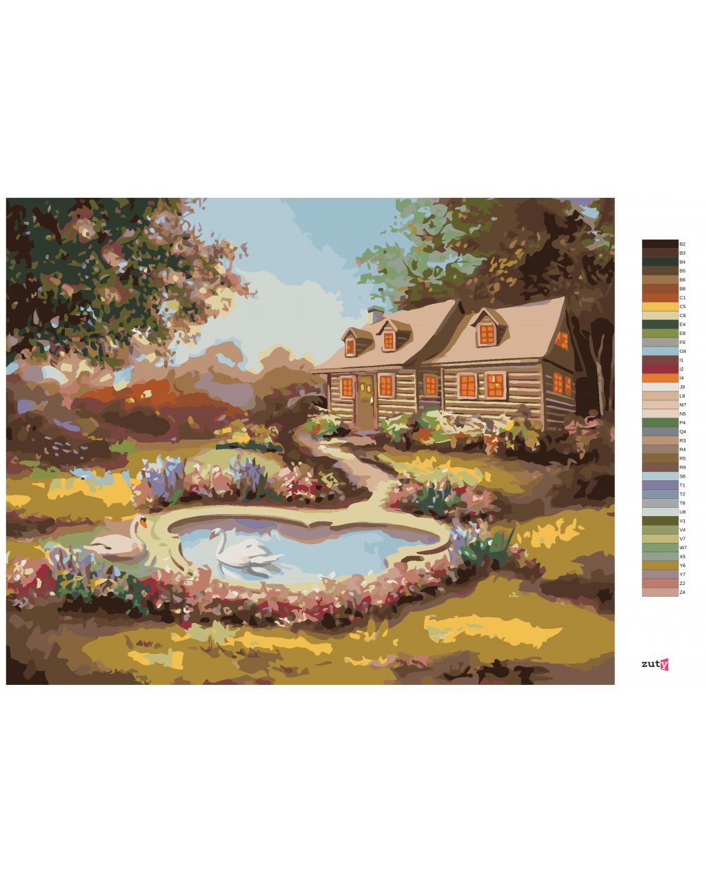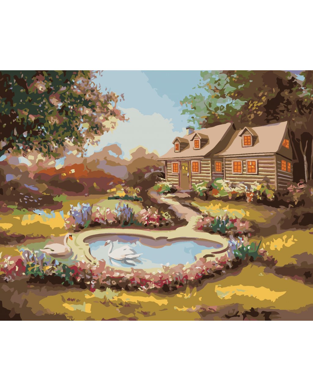 Malování podle čísel - LABUTĚ, KVĚTINY A DŮM (D. RUSTY RUST)