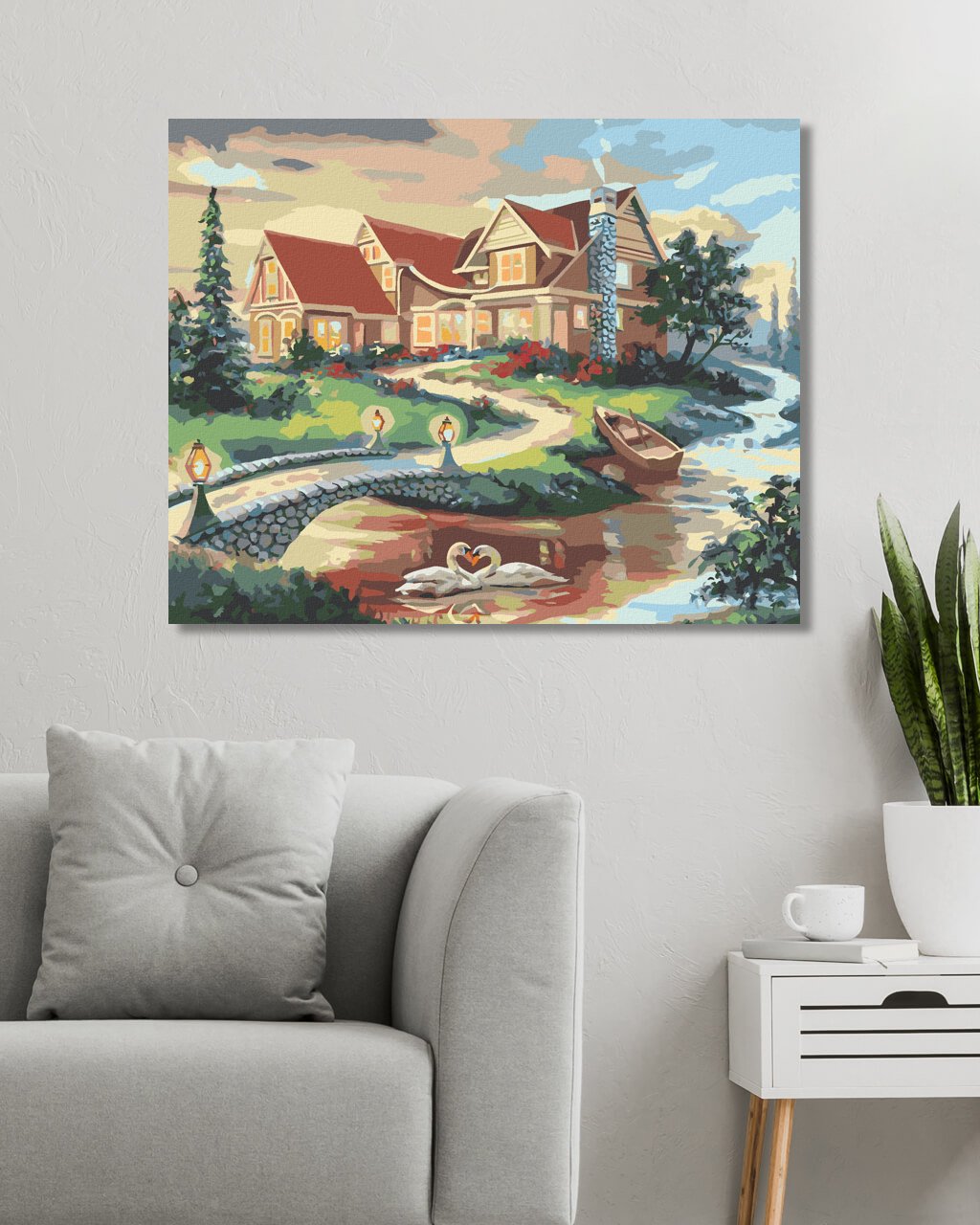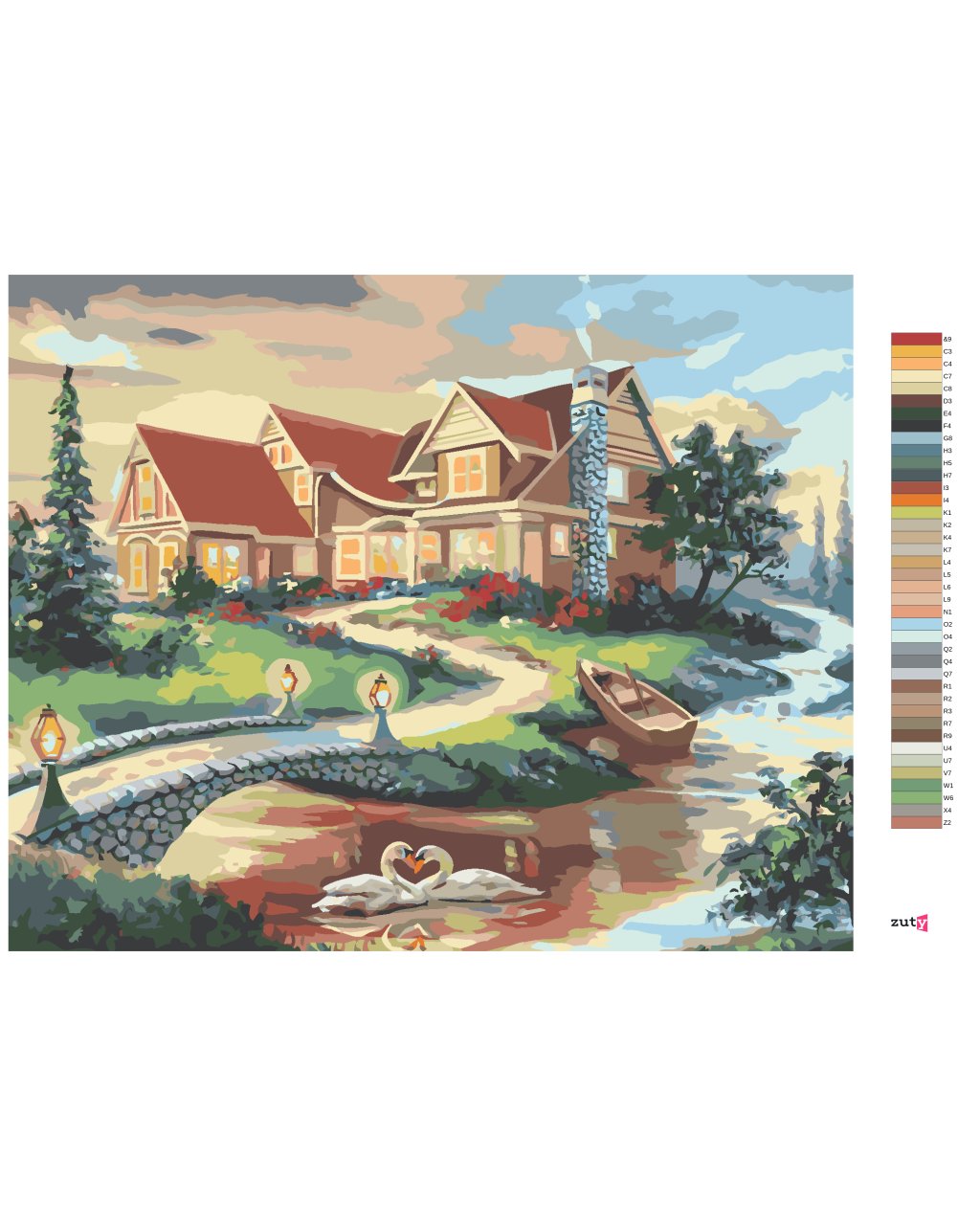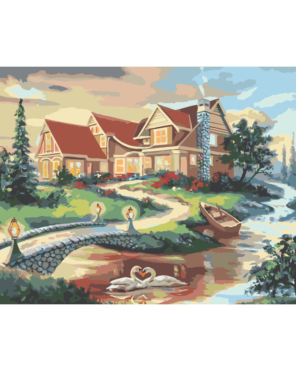 Malování podle čísel - LABUTĚ, MOST A DŮM (D. RUSTY RUST)
