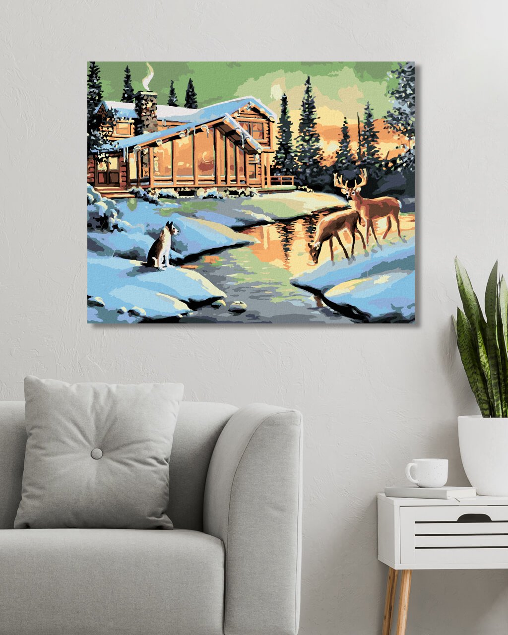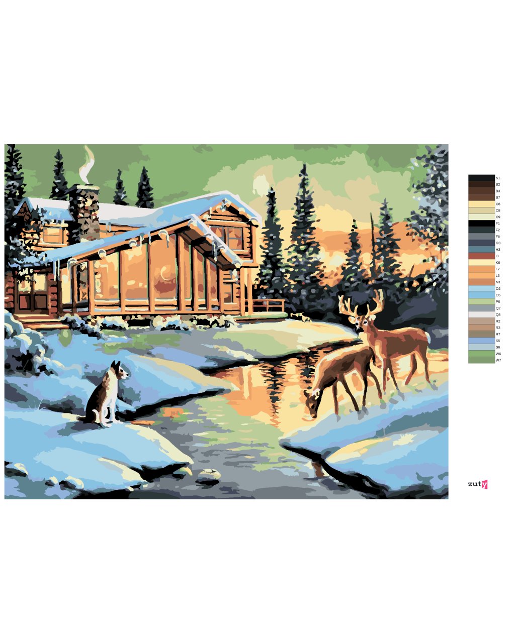 Malování podle čísel - LAŇ, JELEN A PES U SRUBU (D. RUSTY RUST)