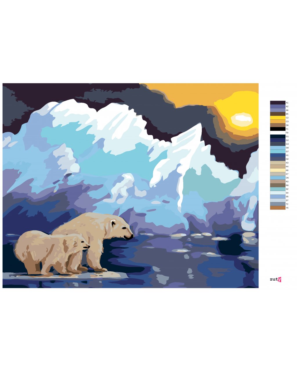 Malování podle čísel - LEDNÍ MEDVĚD NA LEDĚ A LEDOVEC (D. RUSTY RUST)