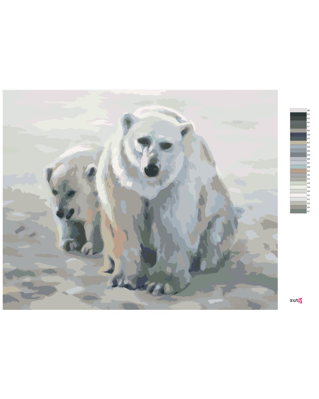 Malování podle čísel - LEDNÍ MEDVĚD S MLÁDĚTEM (D. RUSTY RUST)