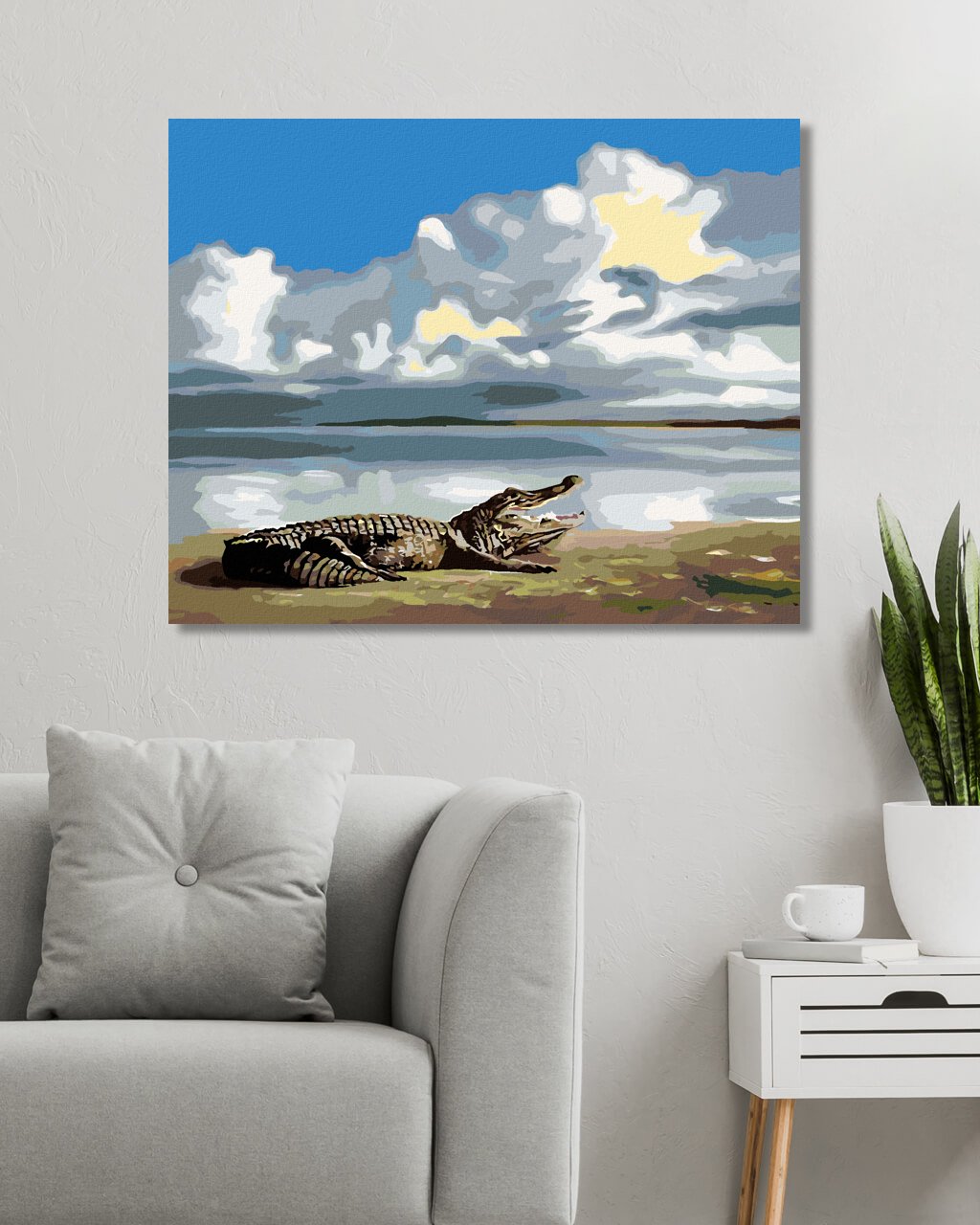 Malování podle čísel - LEŽÍCÍ ALIGÁTOR A NEBE (D. RUSTY RUST)