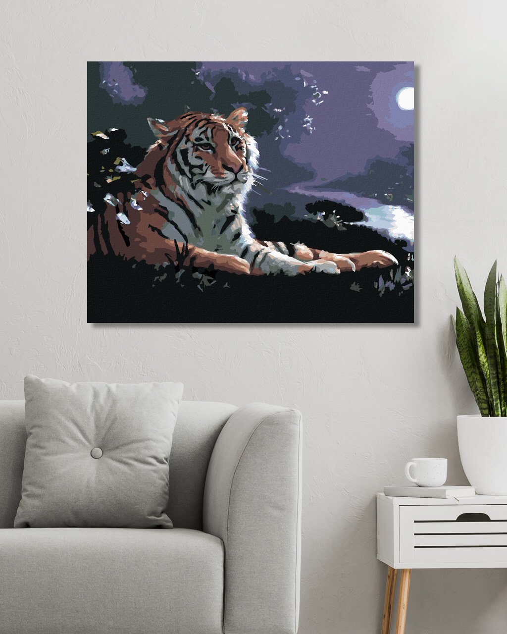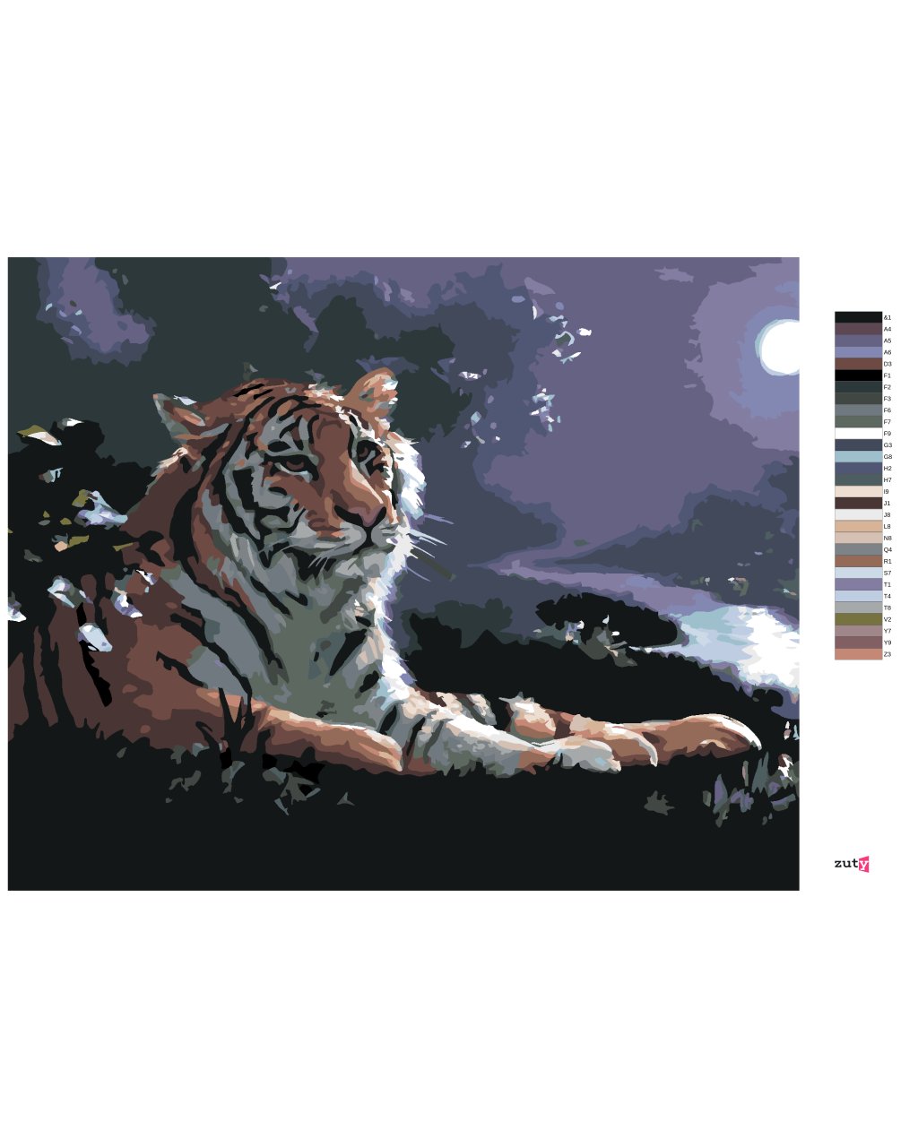 Malování podle čísel - LEŽÍCÍ TYGR, ŘEKA A ÚPLNĚK (D. RUSTY RUST)