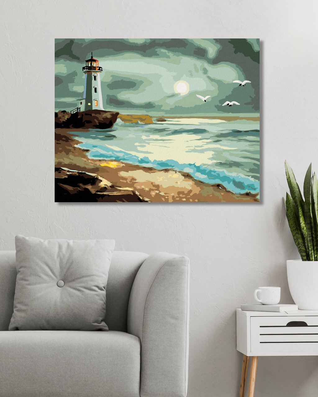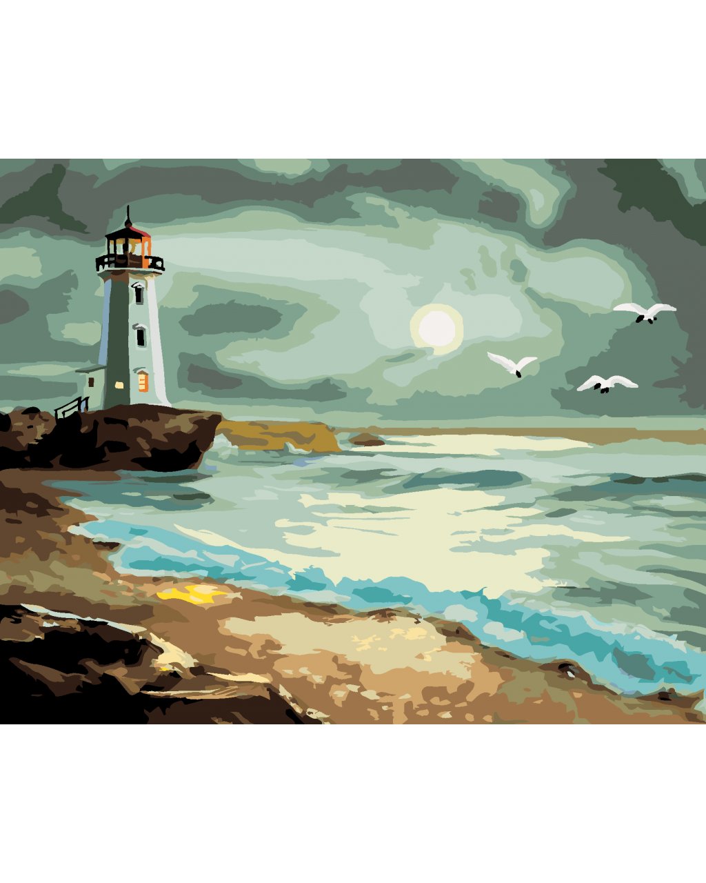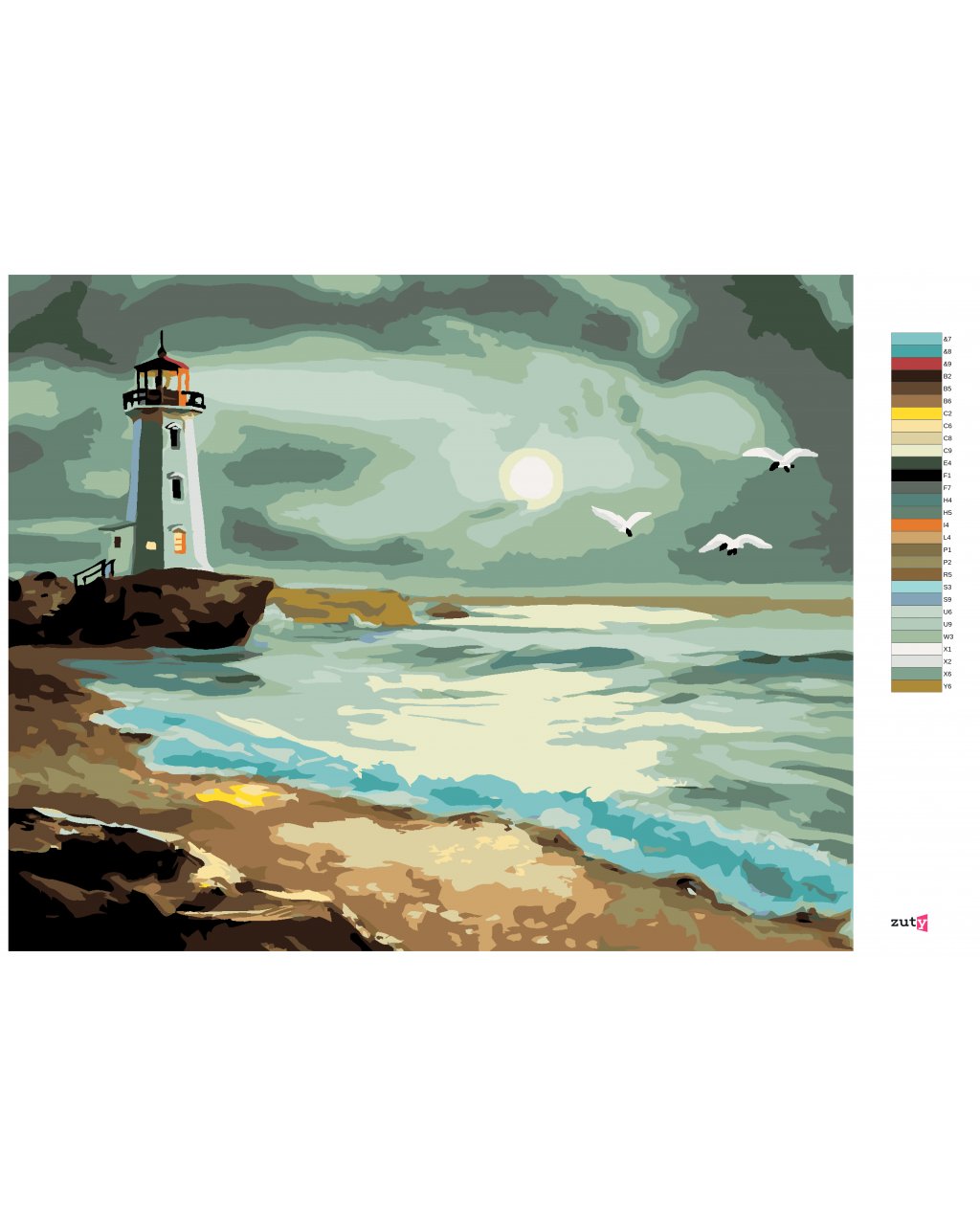Malování podle čísel - MAJÁK OSVĚTLUJÍCÍ PO MOŘE PŘED BOUŘÍ (D. RUSTY RUST)
