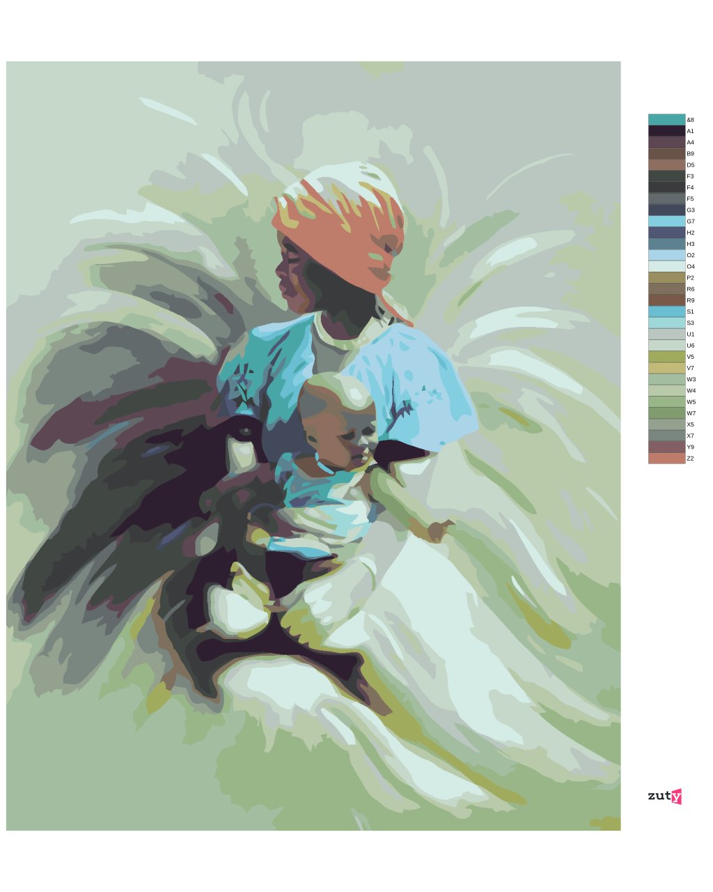 Malování podle čísel - MATKA S DÍTĚTEM - ILUZE LVA (D. RUSTY RUST)