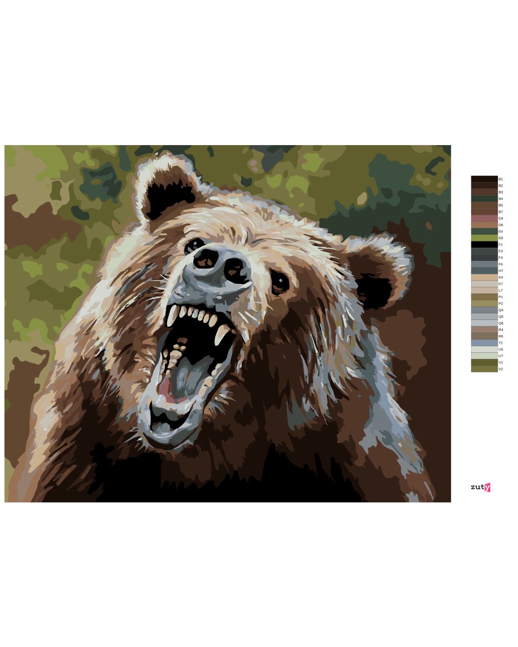Malování podle čísel - MEDVĚD S OTEVŘENOU TLAMOU (D. RUSTY RUST)