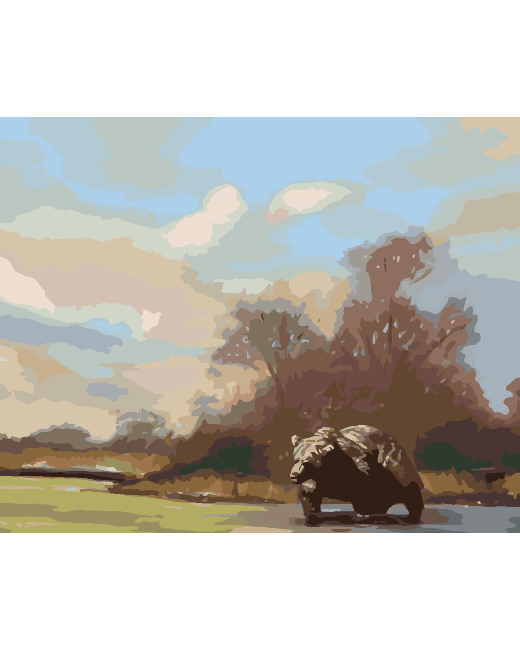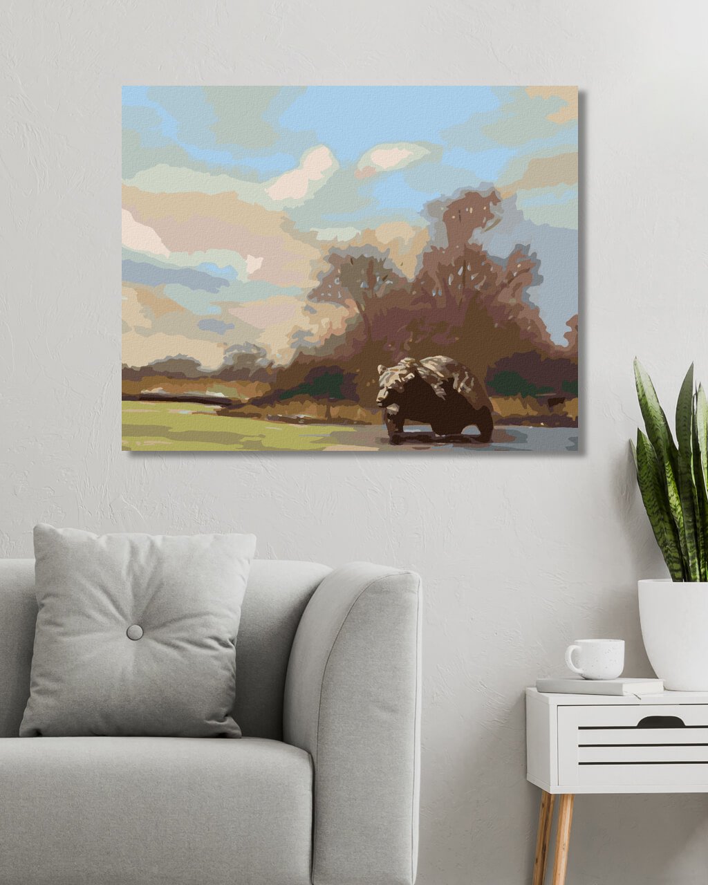 Malování podle čísel - MEDVĚD VE VODĚ A LES (D. RUSTY RUST)