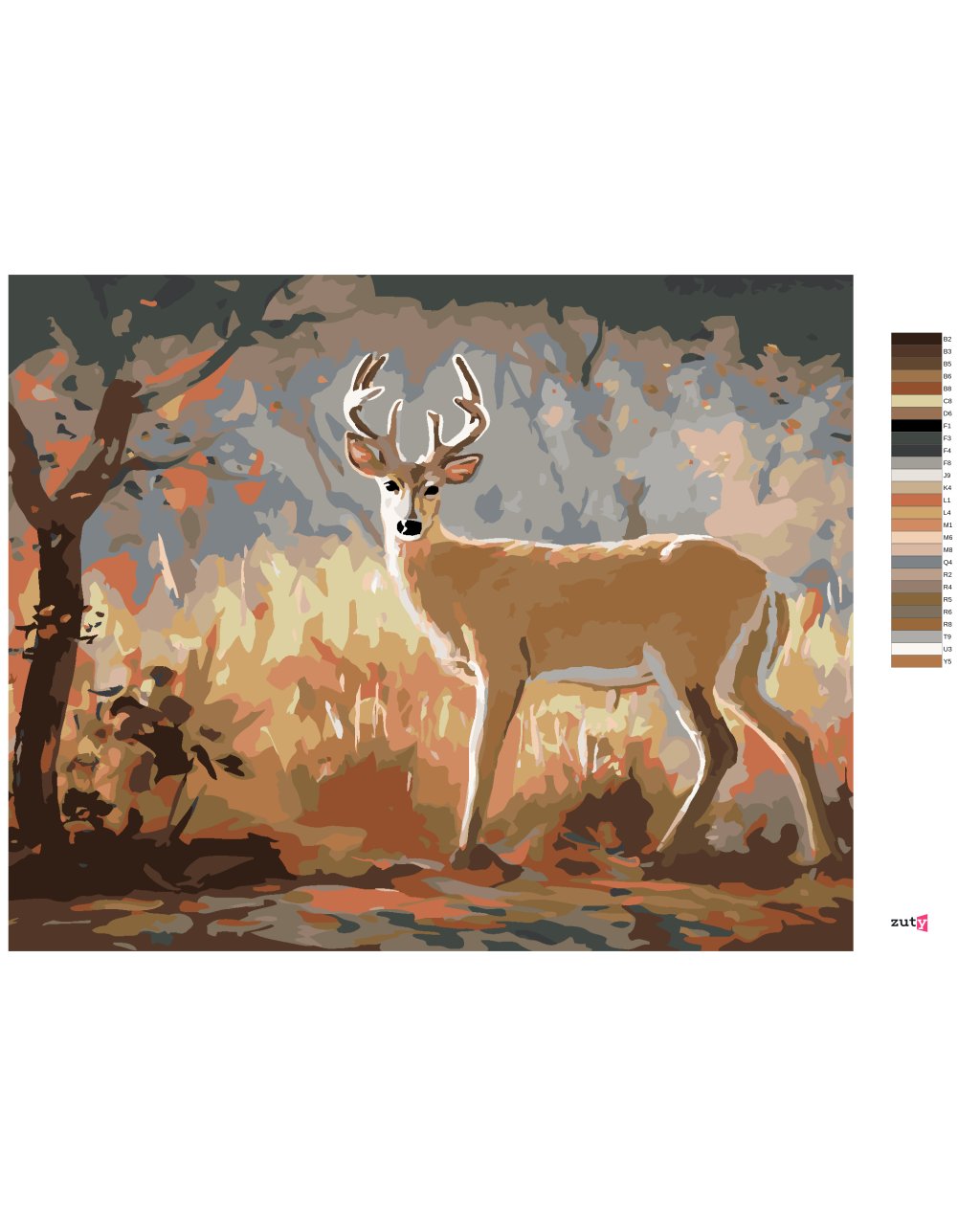 Malování podle čísel - MLADÝ JELEN A PODZIMNÍ LES (D. RUSTY RUST)
