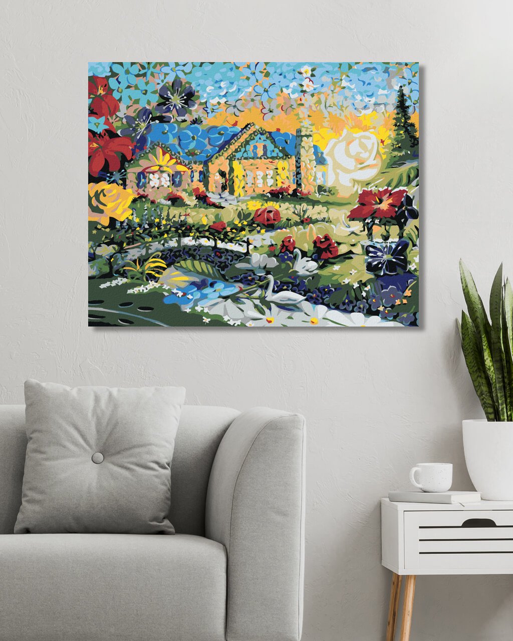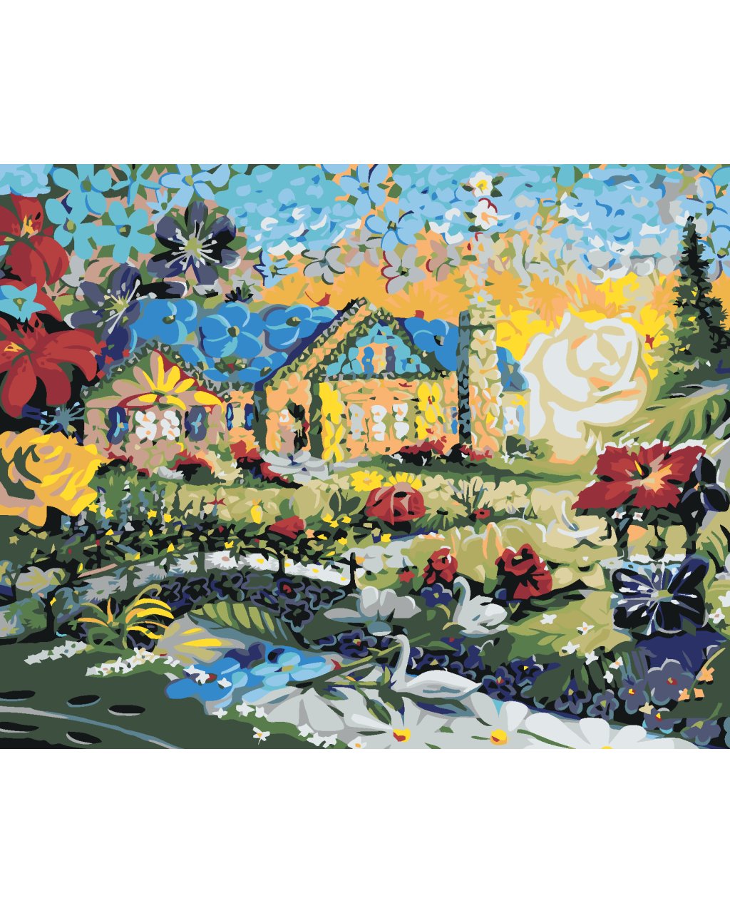Malování podle čísel - MOZAIKA DŮM A ZÁPAD SLUNCE (D. RUSTY RUST)