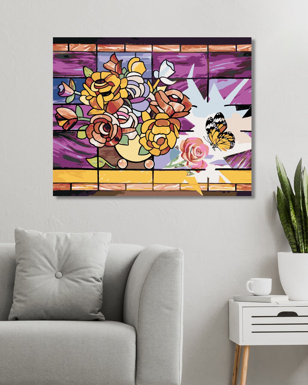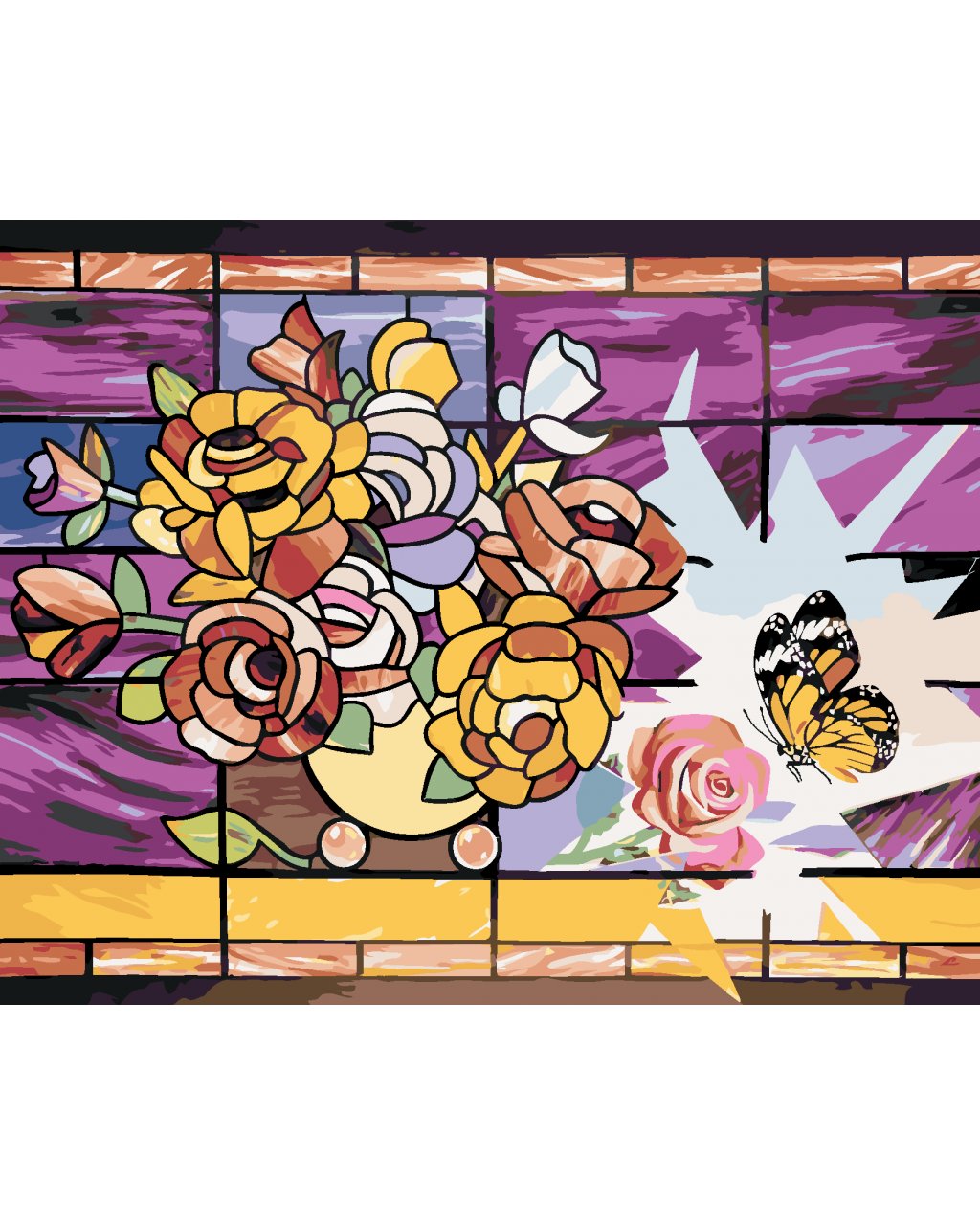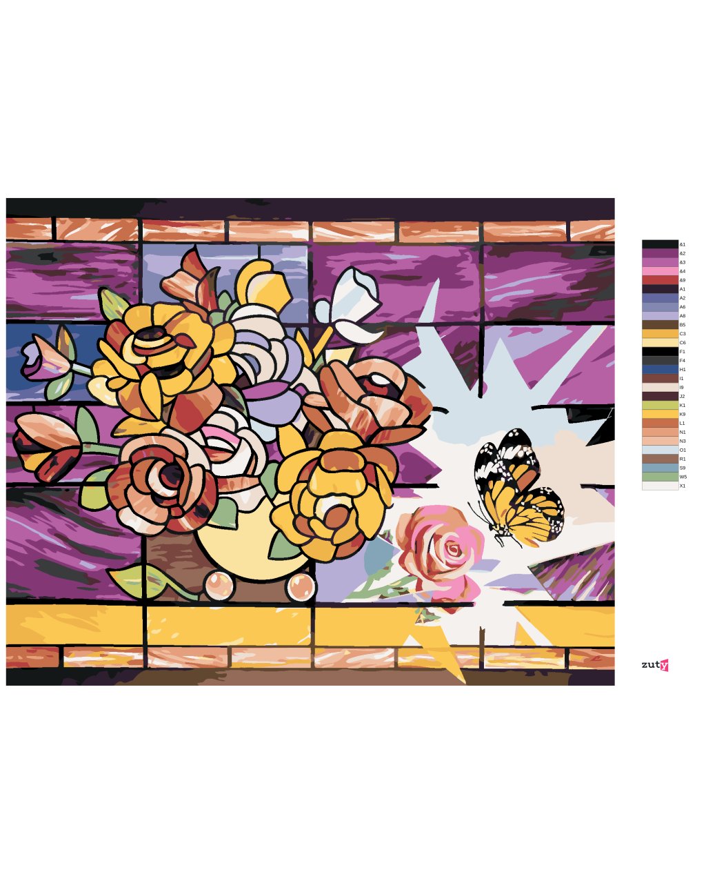 Malování podle čísel - MOZAIKA KYTICE VE VÁZE A MOTÝL (D. RUSTY RUST)
