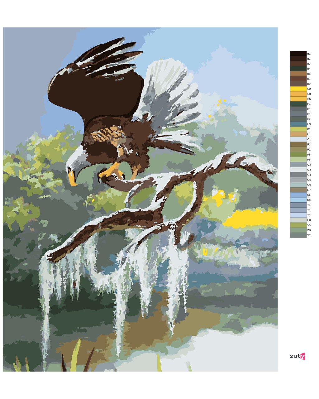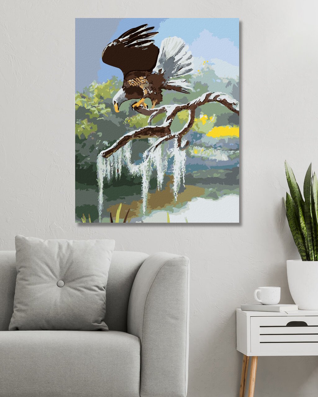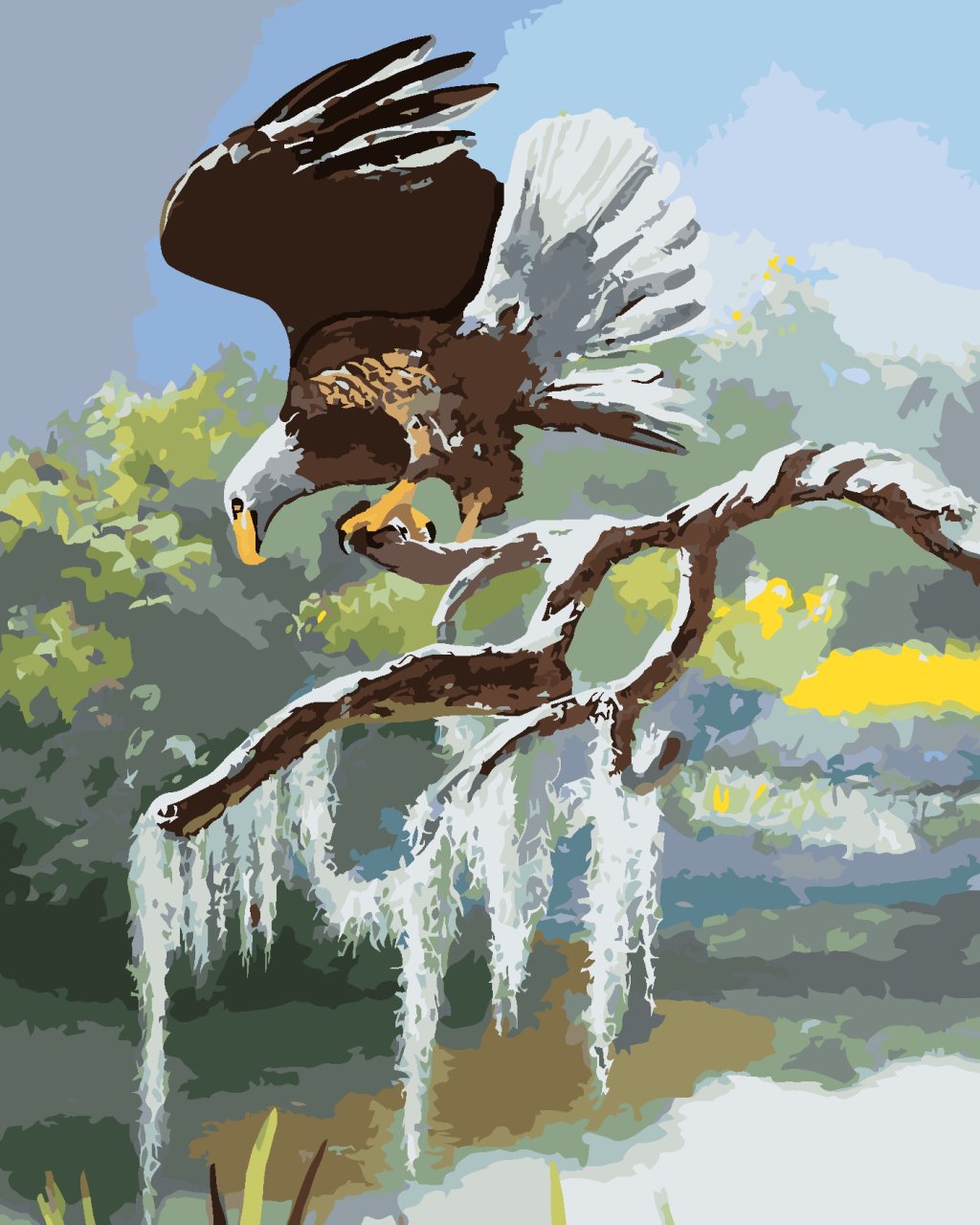 Malování podle čísel - OREL NA VĚTVI U VODY (D. RUSTY RUST)