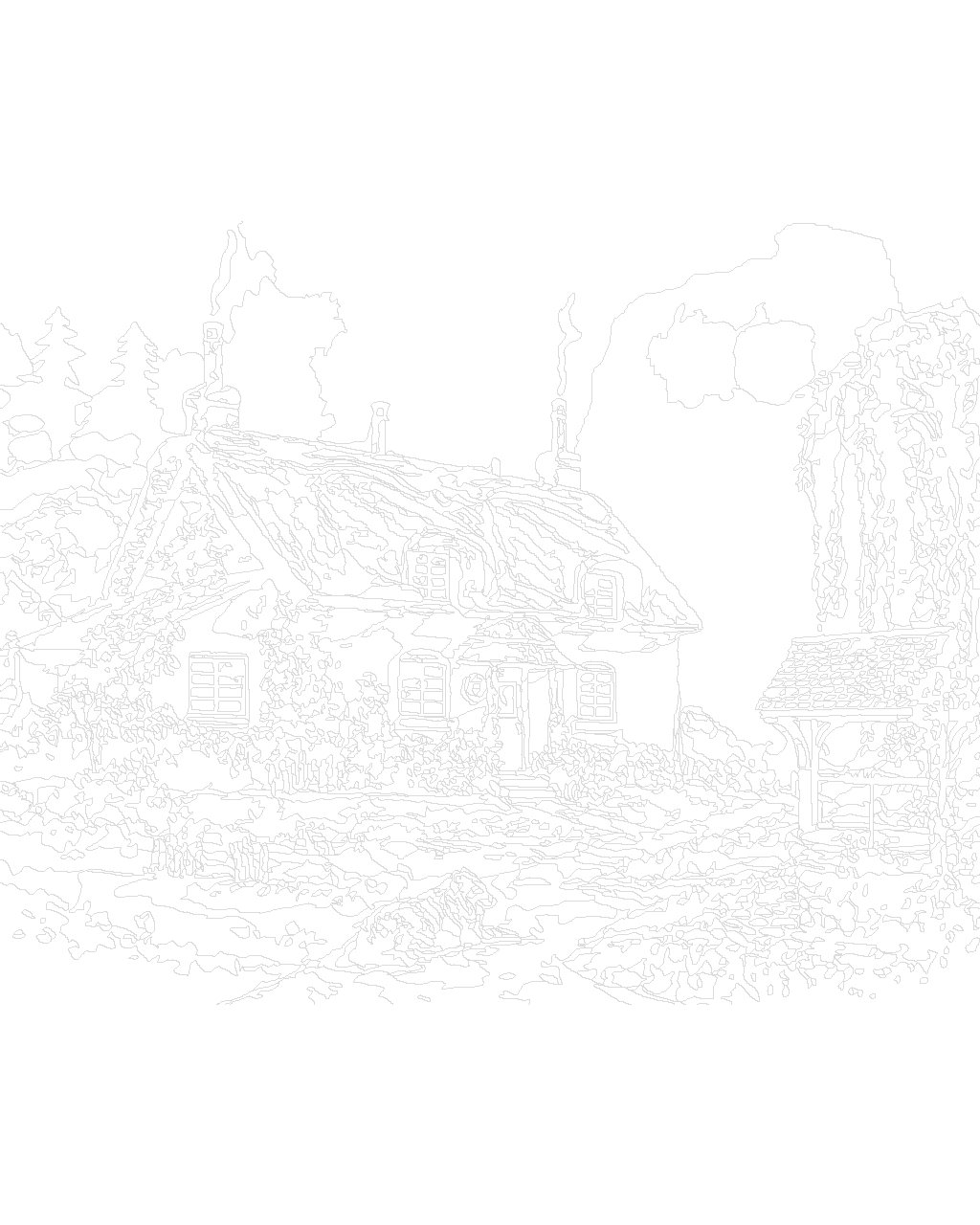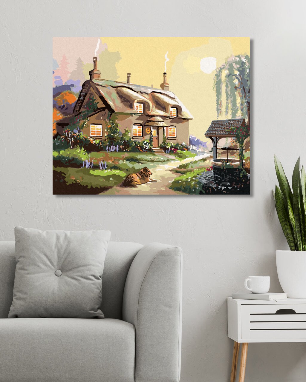 Malování podle čísel - PES PŘED CHALOUPKOU A STUDNA (D. RUSTY RUST)